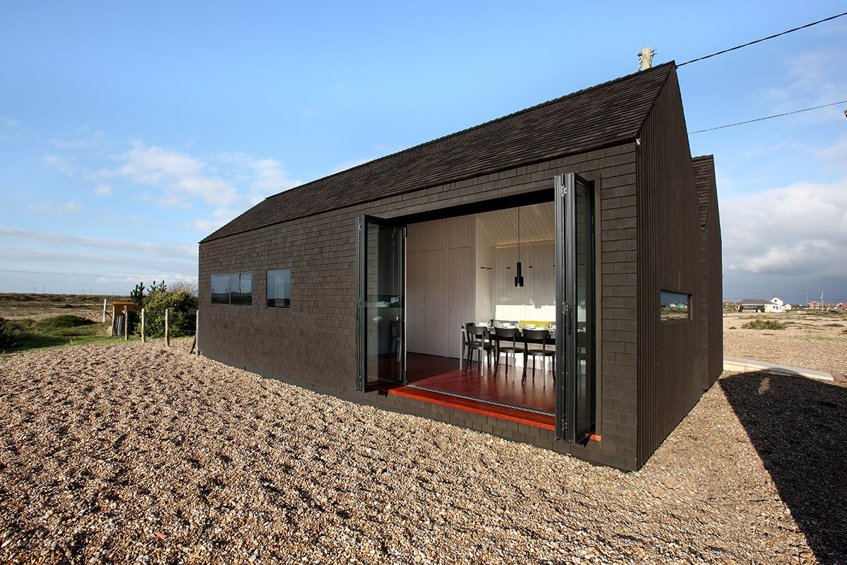 Shingle House, un cottage contemporain, se situe dans un paysage poétique en Angleterre, sur la côte de Dungeness dans le Kent, près de Romney Marsh. Dungeness est considéré comme l'un des plus grands gisements de sable d'Europe, et c'est également un espace naturel protégé, extrêmement riche et pittoresque en flore et en faune. La côte est parsemée de cabanes de pêcheurs, appartenant pour la plupart à des artistes.