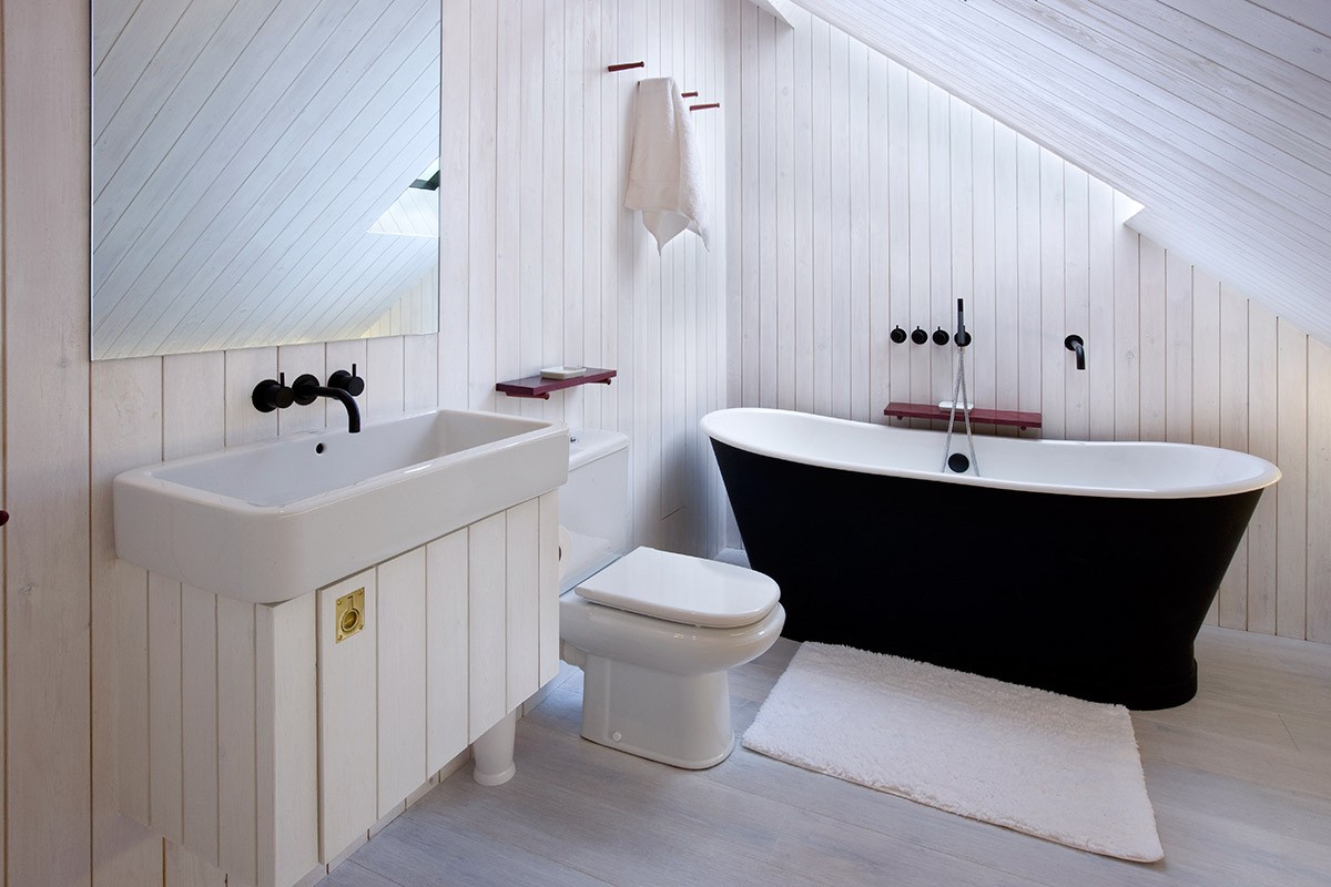 Jeune bureau écossais NORD (Office du Nord pour la recherche et le design) a répondu en termes architecturaux à l'environnement naturel dans lequel il se trouve week-end moderne – la maison des bardeaux. Deux blocs simples et sombres, accompagnés d'un bâtiment plus petit et blanc contrastant, peuvent accueillir jusqu'à 8 personnes, qui disposent d'une salle à manger et d'une cuisine, d'une salle de bains luxueuse et d'un salon et d'un coin chambre. Si l'extérieur de ce du week-end moderne sombre, l'intérieur est recouvert de blanc. L’intérieur est chaleureux, organique, lumineux, en contraste avec la noirceur extérieure. Chaque détail sur week-end moderne est judicieusement choisi pour être en harmonie avec l’ensemble. Le bâtiment, disponible à la location, a reçu un prix RIBA (Royal Institute of British Architects) en 2011.