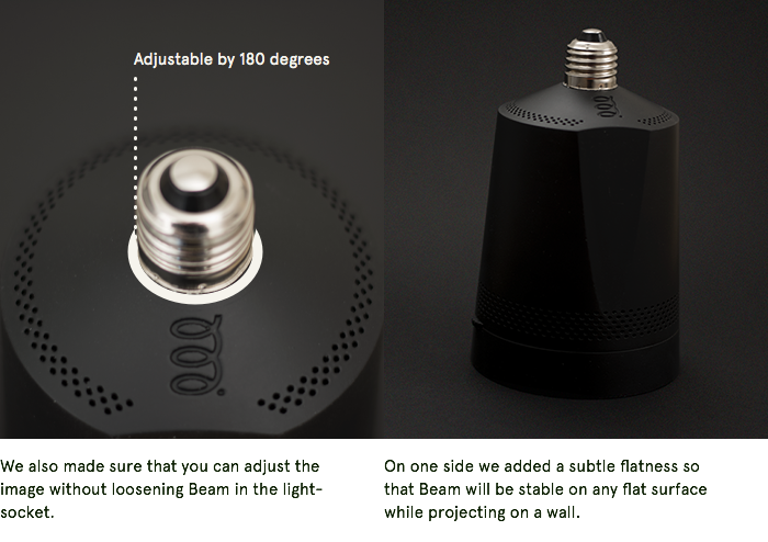 Beam, ki ga upravljamo preko posebne aplikacije, je kompatibilen z Android in iOS napravami, ker pa je sam Android, lahko uporabljate samo aplikacije, ki so na voljo v spletni trgovini jeu de Google. In ko smo prej omenili žarnico, primerjava ni bila naključna. Namreč Beam lahko privijemo na npr. viseče svetilo enako kot žarnico (enak navoj), da vam sliko projicira pravokotno na površino (recimo recept na kuhinjski pult, ko kuhate). Lahko pa ga s priloženim kablom priključite tudi na ”štrom” in sliko usmerite pod želenim kotom.
