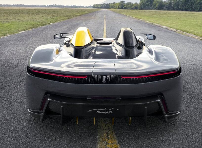 Mais ne vous laissez pas prendre conscience uniquement avec son apparence extérieure. L'intérieur est une combinaison de style de course classique et d'éléments futuristes. Le tableau de bord spacieux, recouvert de cuir marron clair, semble se fondre dans l'extérieur de la voiture. Et si vous pensiez que c'était tout, vous vous trompez. La B95 est la première voiture à disposer d'écrans à air réglables électroniquement dans un véhicule ouvert, inspiré du style des avions militaires d'époque.