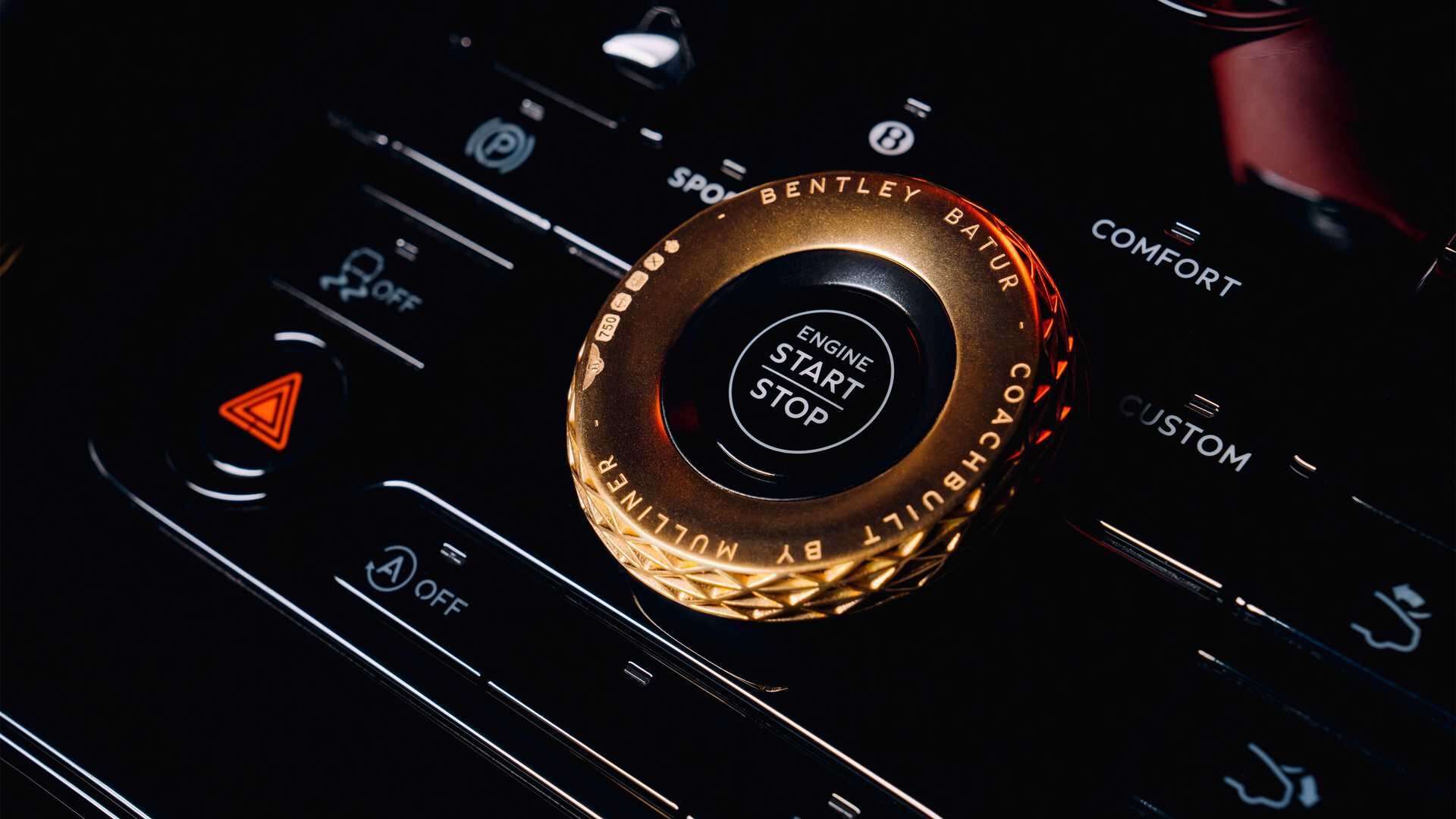 L'intérieur de Batur n'est pas moins surprenant que son extérieur. Il puise son inspiration dans l'intérieur du modèle Bacalar et maintient l'exclusivité du confort et la possibilité d'adaptation aux souhaits de chaque client. Batur propose trois types de matériaux durables pour son intérieur - cuir écossais, italien ou cuir artificiel Dinamica. Les tapis sont fabriqués à partir de fils recyclés, ce qui est également une nouveauté pour la marque Bentley. Au lieu de fibres de carbone, ils ont utilisé des composites de fibres naturelles sans résine, qui sont encore plus respectueux de l'environnement dans leur production. Pour les plus exigeants, des composants imprimés en 3D sont disponibles, à partir de or 18 carats.