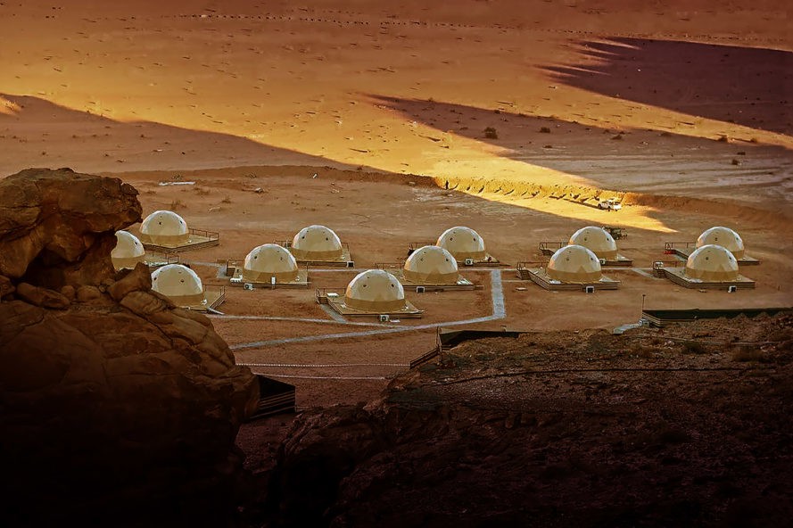 Ceci est situé près de l'endroit où le film The Martian a été tourné, et nous obtenons ainsi une sensation vraiment incroyable d'un paysage rouge qui est complètement d'un autre monde. Mais pour que les sensations soient bonnes, les dômes ou les tentes offrent tout le confort, comme une salle de bain privée et une grande baie vitrée sur ce paysage vraiment incroyable.