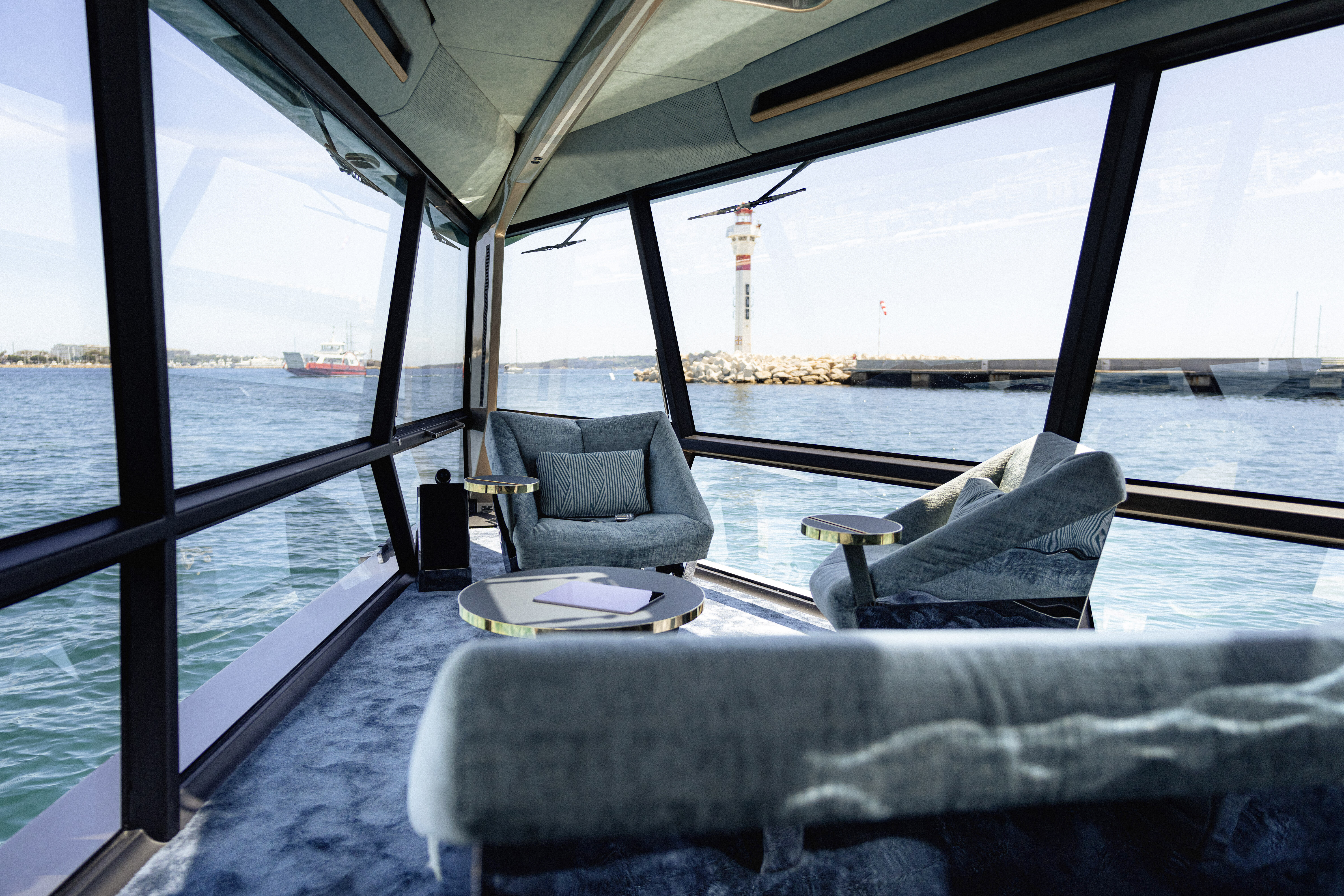 L'ICÔNE c'est aussi un centre social qui se sent chez lui dans n'importe quel port. Par les portes vitrées inclinées, vous entrez dans le salon qui, avec son mobilier artistiquement conçu sur un tapis luxueux, rappelle kaléidoscope. Les sièges rotatifs à 360° sont au cœur de l'expérience utilisateur, avec toutes les fonctions clés - y compris le système d'infodivertissement sur tablette - à portée de main.