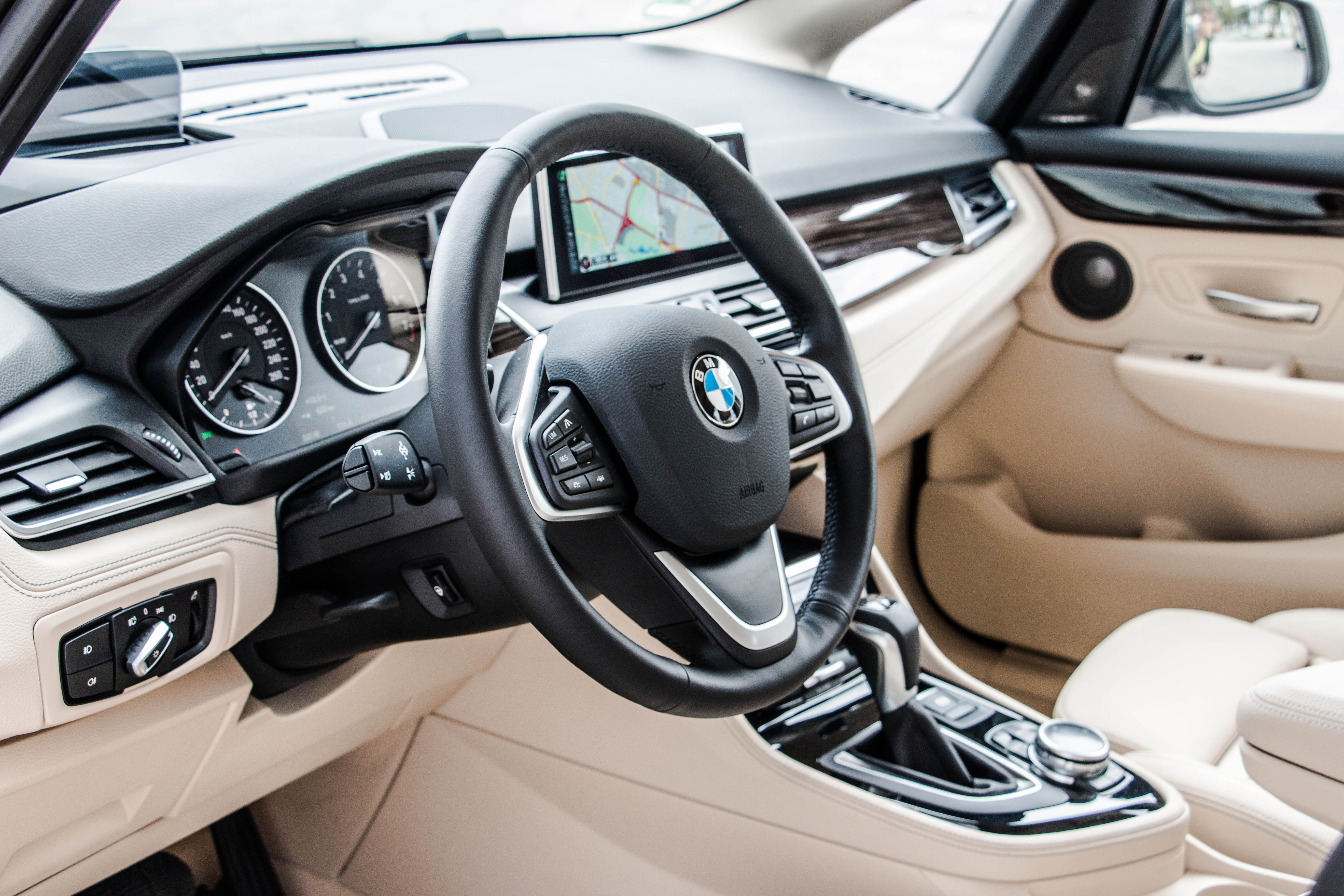 Active tourer navduši z detajli v notranjosti. Tako je popolnoma nova zasnova armaturne plošče, oziroma njenega sredinskega dela, ki je oblikovno drugačna in sveža. Navdušuje predvsem kakovost izdelave, ki v nobenem pogledu ne zaostaja za najvišjimi modelnimi številkami te znamke in jih s svojim svežim šarmom na trenutke celo prekaša. Kljub znanim elementom v notranjosti, skupnim vsem modelom BMW, se zdi, da bodo prav tu prepričevali kupce, da so boljši od konkurence. V ta segment namreč prinaša active tourer visoko raven premium občutkov.