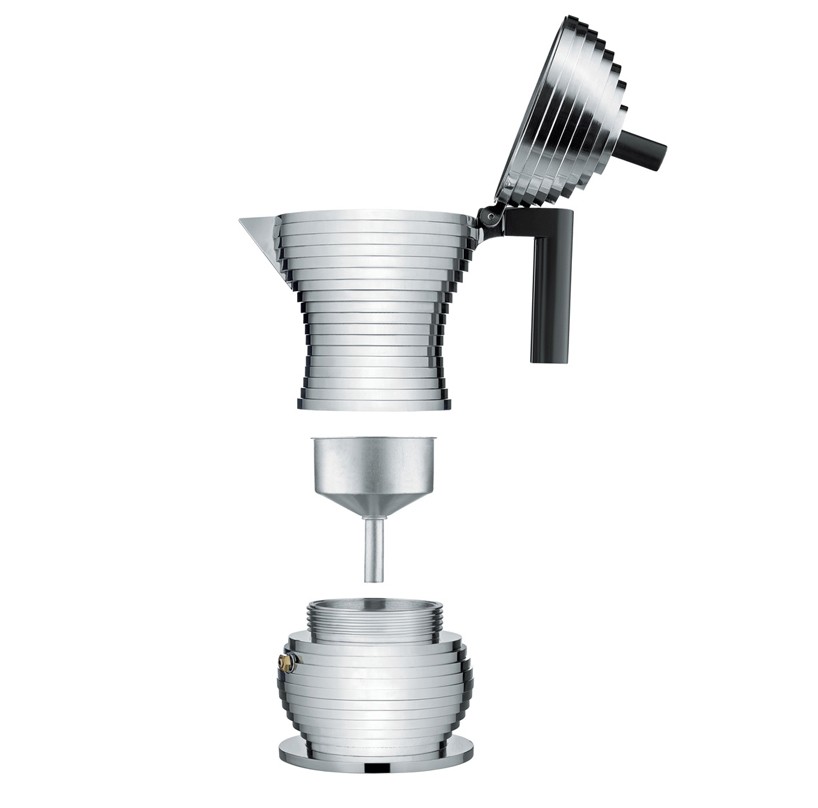 La cafetière à expresso Pulcina est l'œuvre de Michele de Lucchi et combine la technologie de deux géants italiens du design et de l'industrie du café - Alessi et Illycaffè. Ce dernier a apporté ses connaissances en matière de préparation du café, tandis qu'Alessi a apporté son expérience en matière de design. Et c'est ainsi qu'est née une machine à café qui prépare le café du nouveau millénaire en mettant l'accent sur les propriétés organoleptiques du café, c'est-à-dire les caractéristiques que nous percevons par la bouche et le nez.