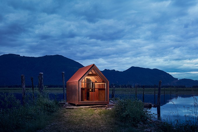 La cabine en acier avec son image « rouillée » discret placé dans l'environnement et peut servir de bivouac, d'espace de travail, de station de recherche, de résidence ascétique ou de point de départ pour l'exploration de la nature, la chasse, la pêche ou toute autre tâche.