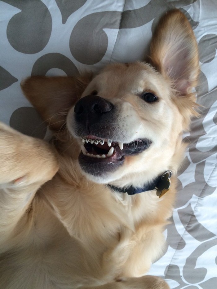 Les chiens mignons nous font sourire. Le golden retriever Wesley devra souffrir encore un peu pour son sourire. Wesley, 6 mois, a reçu un appareil dentaire à cause de problèmes avec ses dents. Vous avez bien lu, les accolades. Elle fait maintenant sensation sur Internet avec son charmant sourire.