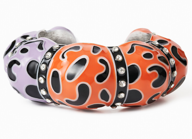 Il convient également de mentionner les accessoires, qui sont la vedette du spectacle. La joaillerie occupe le devant de la scène car Iris est bien connue pour son penchant pour la superposition de pièces audacieuses et son approche "plus c'est plus". L'offre comprend de grands colliers, des boucles d'oreilles et un bracelet. D'autres accessoires incluent des chaussures, des ceintures et des collants à motifs.