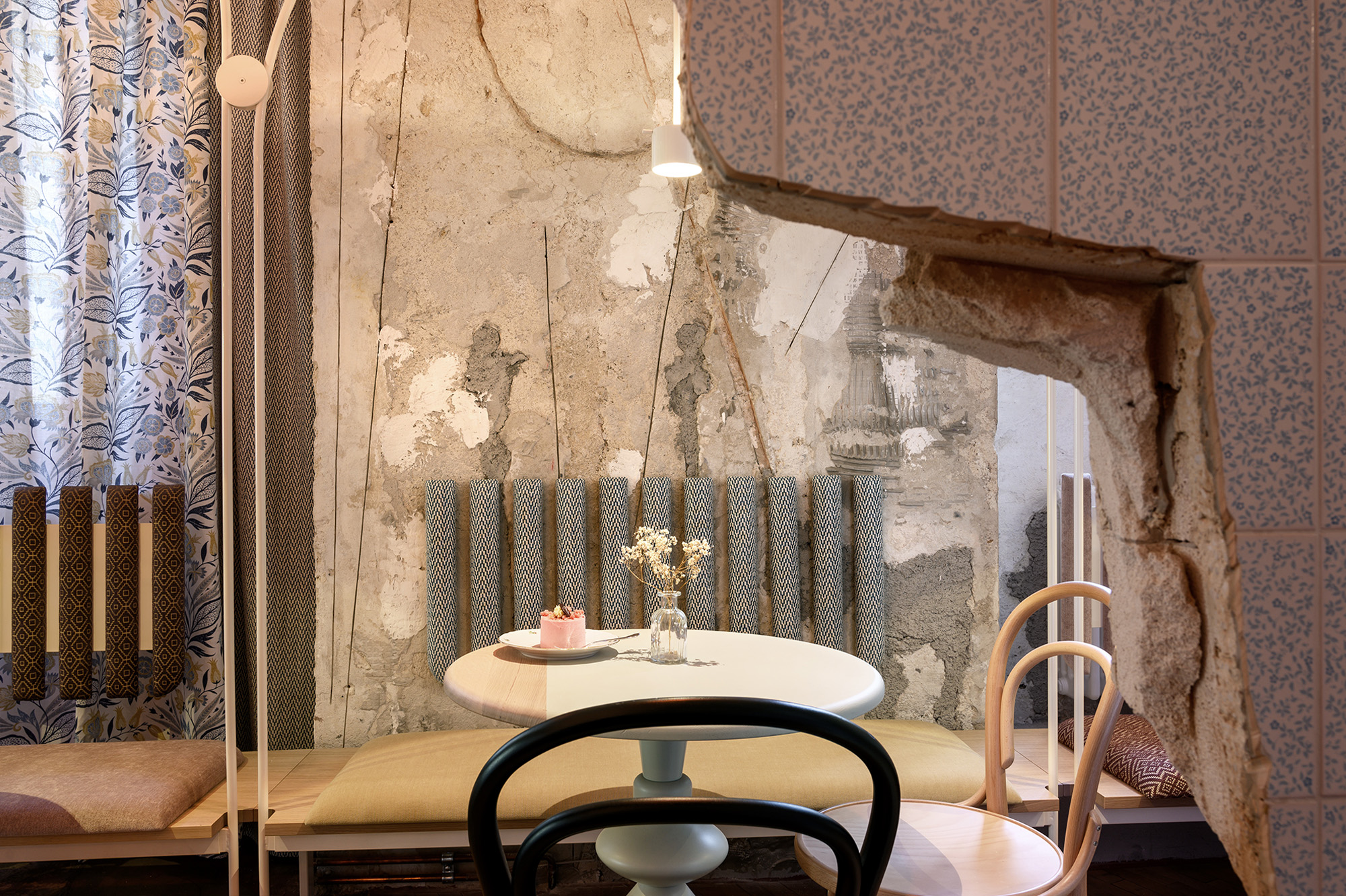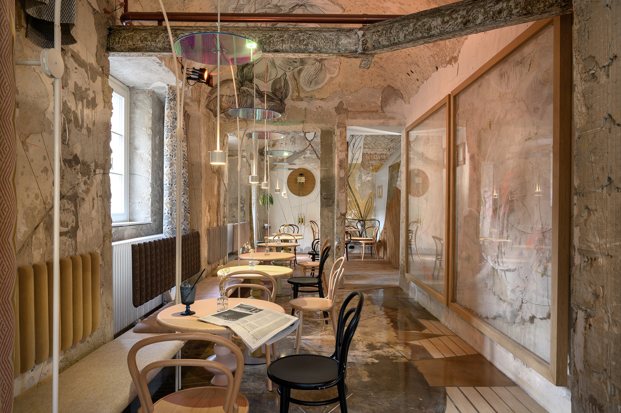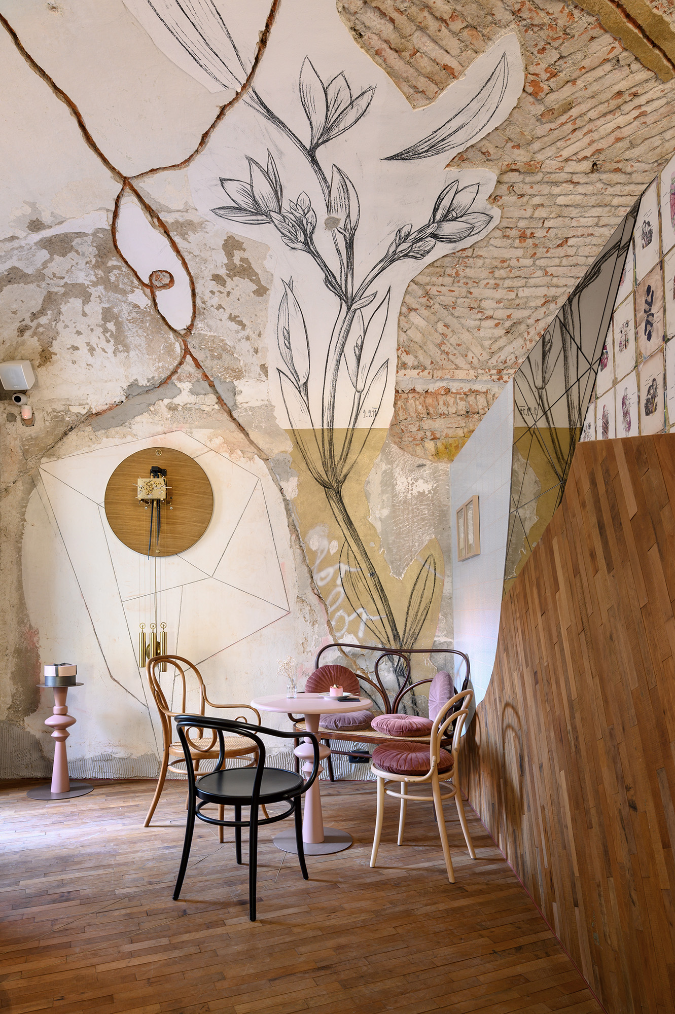La chambre a été conçue avec une largeur exceptionnelle dans un style architectural boutique au bureau de la Trinité. L'artiste Jaša Mrevlje Pollak a créé un espace au design unique qui joue avec tous les sens. Chaque bit l'espace est une histoire en soi, et principalement des matériaux recyclés ont été utilisés pour sa conception. Dans cet espace unique, les briques sont apparentes, le sol et les murs sont bruts et ont un aspect inachevé, le parquet et les carreaux de céramique sur le mur sont nouvellement utilisés. Une approche durable et il est également visible à travers des tasses à café et des assiettes vintage dans lesquelles des délices sont servis.