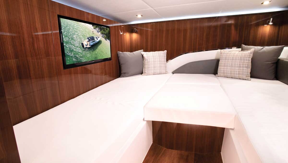 Quand tu entres à l'intérieur Yachts de croisière 50 GLS, vous aurez l'impression d'être entré dans un monde de luxe et d'élégance. L'intérieur ressemble à un hôtel cinq étoiles flottant. Chaque coin est soigneusement planifié pour offrir un maximum de confort et de fonctionnalité. Le salon spacieux avec des sièges en cuir souple et des touches contemporaines est parfait pour des soirées détendues en bonne compagnie. Au centre du salon se trouve un grand téléviseur ultra HD, entièrement intégré à un système audio haut de gamme, permettant une expérience cinématographique au milieu de l'océan. Equipée des dernières technologies, dont une plaque à induction, un réfrigérateur moderne et une machine à café avancée, la cuisine offre tout ce dont vous avez besoin pour préparer des repas gastronomiques. Une chambre avec un grand lit, une literie luxueuse et une télévision intégrée vous promet des nuits paisibles, tandis que le doux bercement des vagues vous transporte dans un monde de rêves. Chaque détail, de l'éclairage au choix des matériaux, est conçu pour créer une ambiance de luxe et de convivialité difficile à trouver ailleurs.