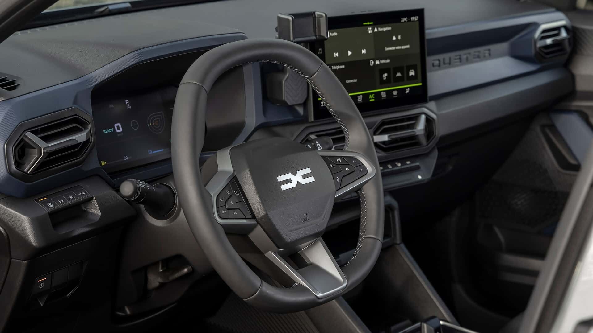 Le Duster propose un cockpit hautement numérisé qui comprend Affichage des instruments numériques de 7 pouces et 1Écran d'infodivertissement de 0,1 pouce. Un confort supplémentaire est assuré par le système Dacia YouClip avec jusqu'à cinq points d'appui pour fixer smartphones, tablettes, sacs de rangement, porte-gobelets, etc. Le nouveau modèle offre également 30 mm d'espace supplémentaire pour les jambes aux places arrière et une largeur intérieure accrue à l'avant. Le coffre présente une ouverture plus large et un plancher plus bas, avec un volume de 472 litres, ce qui représente une augmentation de 6% par rapport au modèle précédent.