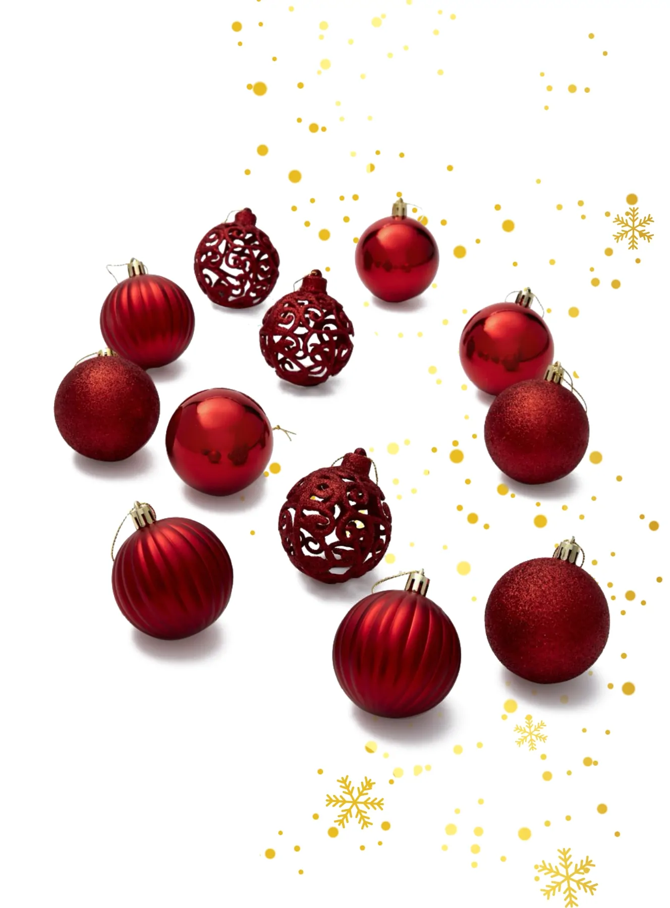 Si vous aimez une approche traditionnelle de Noël, vous adorerez les décorations classiques dans des combinaisons de couleurs distinctives. Vous trouverez de nombreuses décorations en rouge - boules de Noël, pendentifs de sapin de Noël, figurines diverses, bougies et textiles. Le magasin propose également de nombreuses autres décorations de Noël et du Nouvel An dans d'autres couleurs.