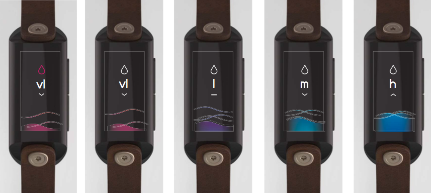 Si nous sommes bien hydratés, nous nous sentons mieux, pensons mieux, avons meilleure apparence et sommes généralement en meilleure santé. LVL n'est pas simplement un autre tracker d'activité car il mesure ce qu'aucun autre tracker ne mesure, même s'il s'agit d'un élément clé de la santé : les niveaux d'hydratation. Mais il ne se contente pas de mesurer, il conseille également l'utilisateur. Le bracelet intelligent nous indique à tout moment la quantité d'eau que nous devons boire à un moment donné pour fonctionner au mieux pendant la journée.