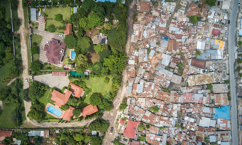 Les vues à vol d'oiseau révèlent, entre autres, des problèmes sociaux, notamment Inégalité économique. Il est plus difficile de reconnaître les différences entre les personnes sur le terrain. Photographe John Miller Je pense que oui. photos prises avec des drones, reflètent mieux la situation réelle dans le monde.
