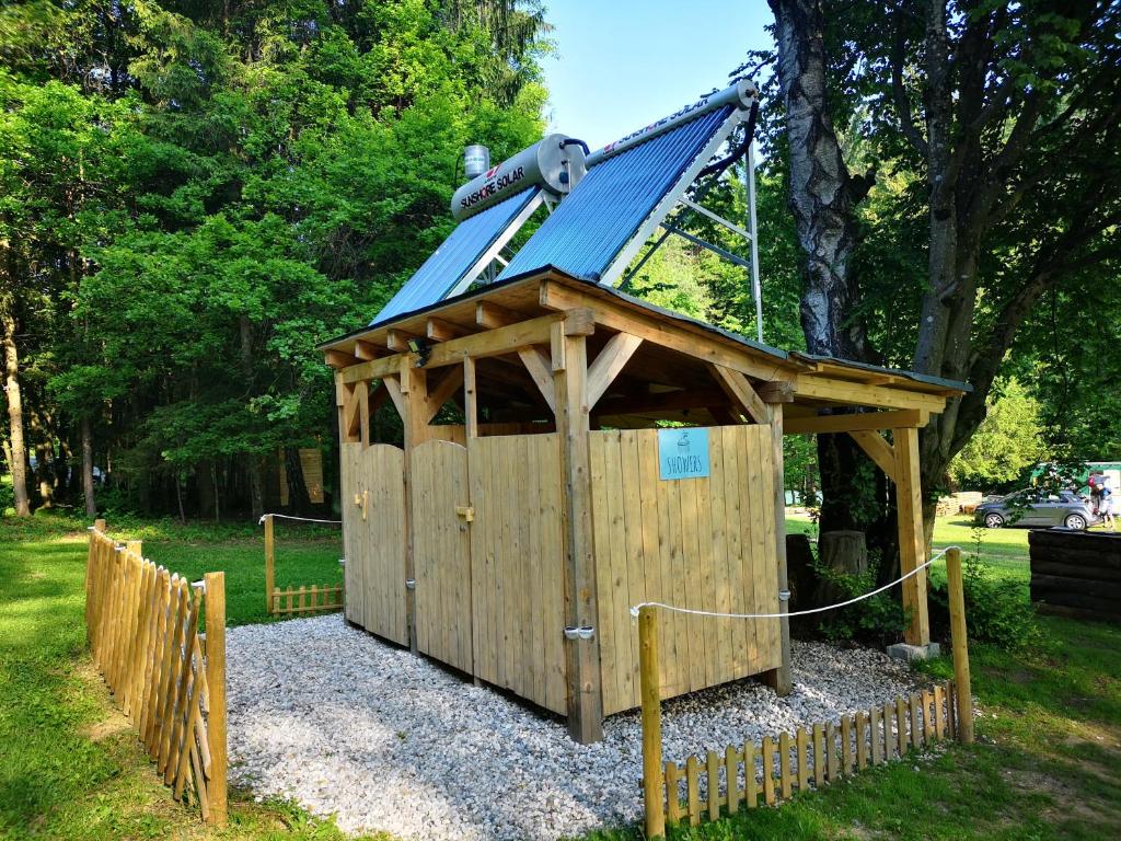 Cuisine extérieure avec équipement barbecue permet de préparer de délicieux repas en pleine forêt. L'ensemble du camp est alimenté par énergie du soleil, il est équipé de grands panneaux solaires, le même concept est également utilisé pour chauffage de l'eau dans les douches. Le camp propose également Wifi gratuit.