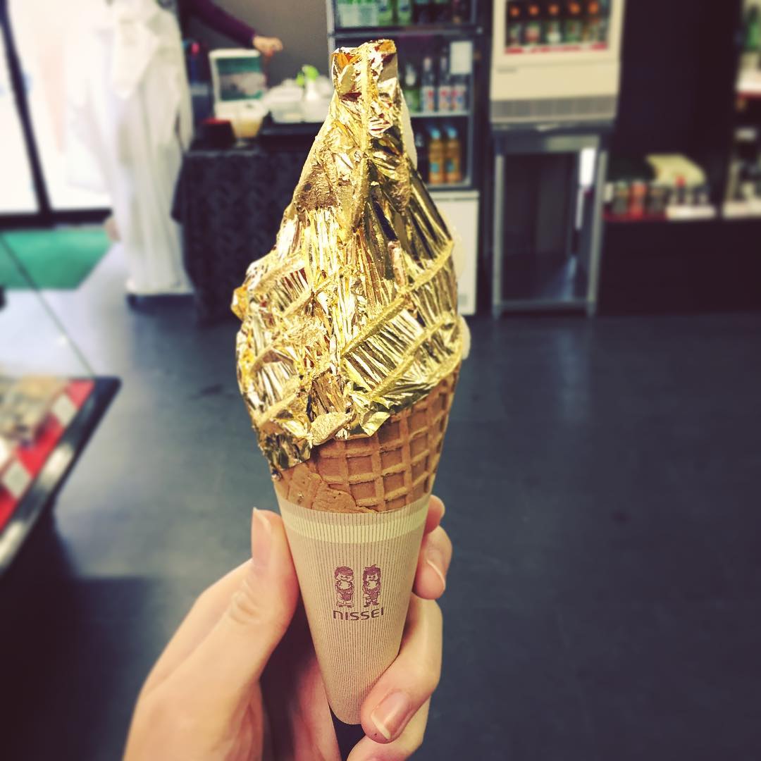 La ruée vers l'or a mangé dans tous les pores, y compris la nourriture. On ne se souvient que des beignets et du vin (mousseux) aux feuilles d'or. Dans la ville de Kanazawa, la capitale japonaise de la feuille d'or, comme on l'appelle aussi, on peut désormais aussi imaginer des glaces liquides enveloppées dans de l'or alimentaire. Et si vous pensez que c'est un "fun" cher, vous vous trompez, car vous pouvez avoir ce genre de glace pour aussi peu que 7 euros !
