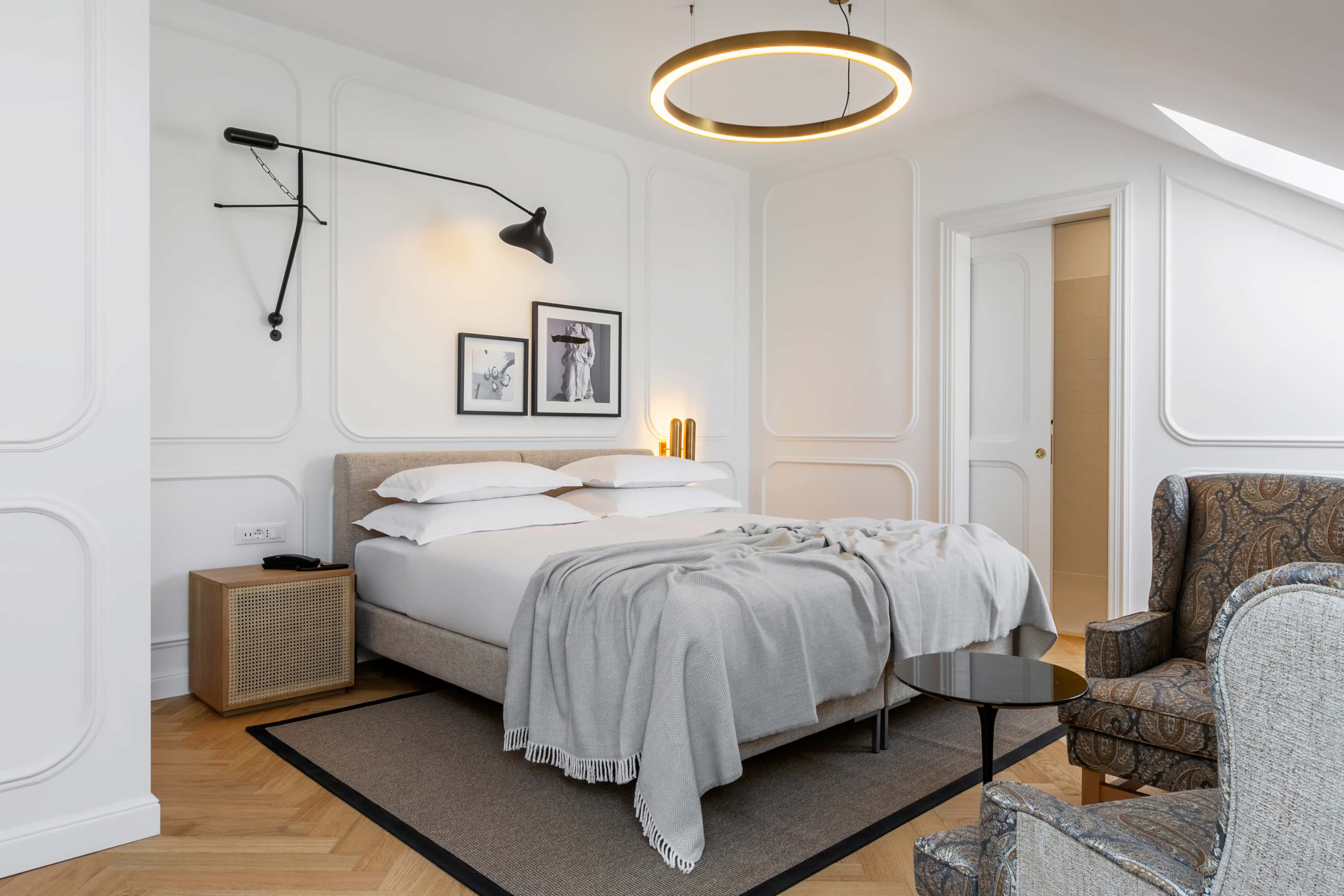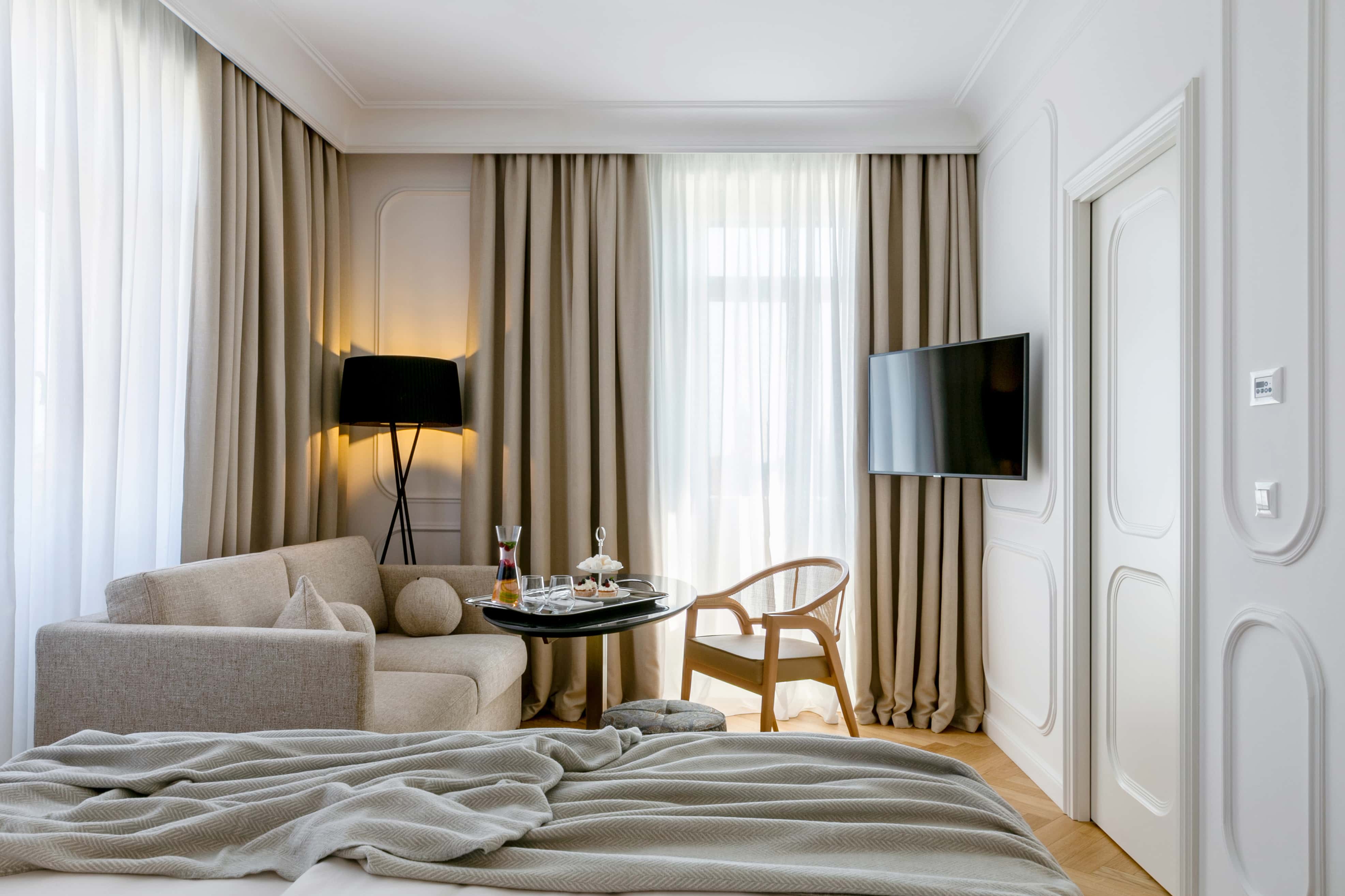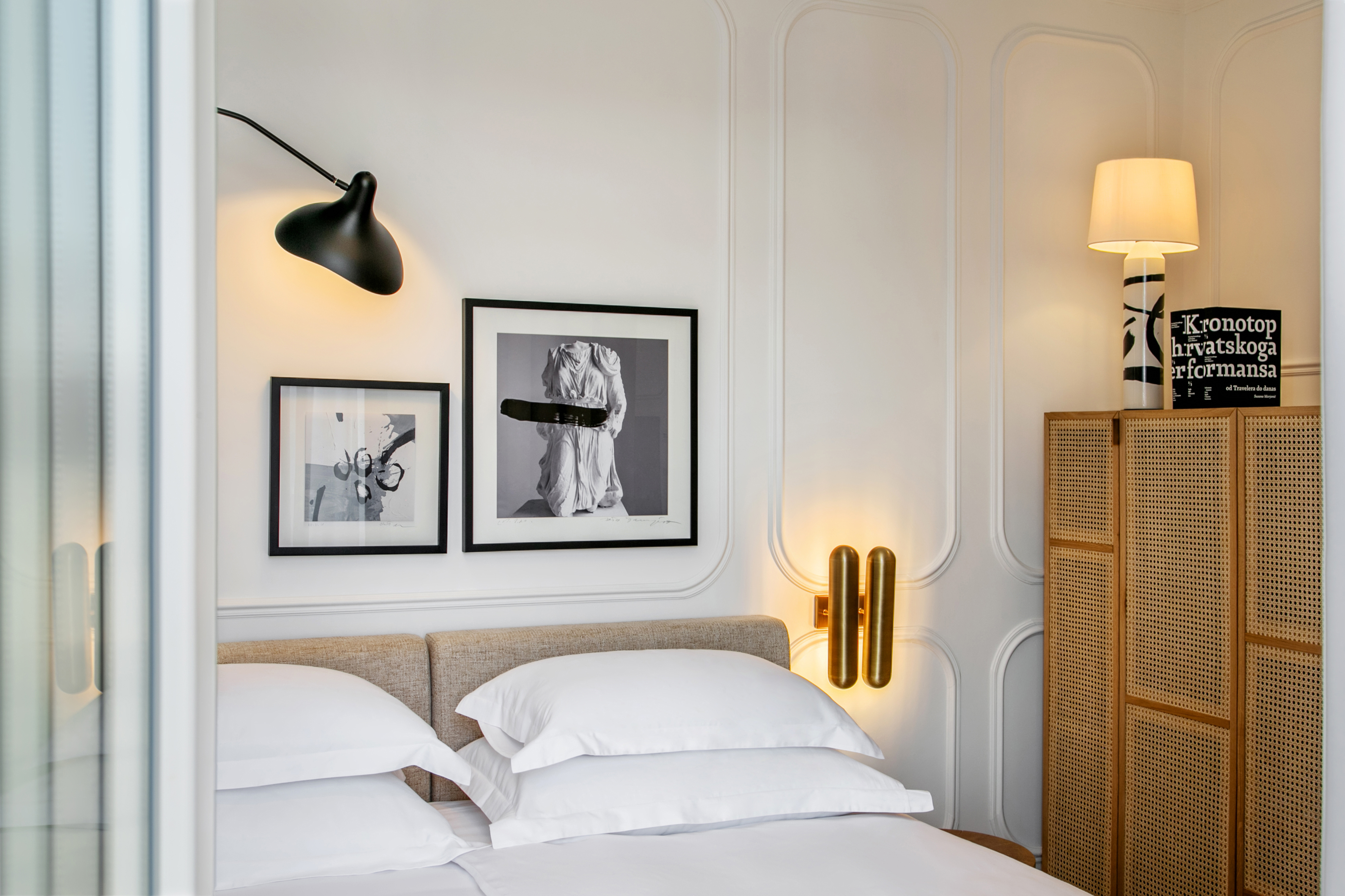 Tous les détails ont été créés avec une touche d'élégance et de luxe. Le mobilier classique se marie parfaitement avec les pièces d'époque soigneusement sélectionnées et la décoration moderne qui fait la renommée de cet hôtel. L'intérieur confortable est décoré avec un éclairage décoratif sélectionné qui souligne l'atmosphère chaleureuse et détendue de l'hôtel. Le design intérieur du nouvel hôtel a été coparrainé par Studio Franic & Šekoranja.