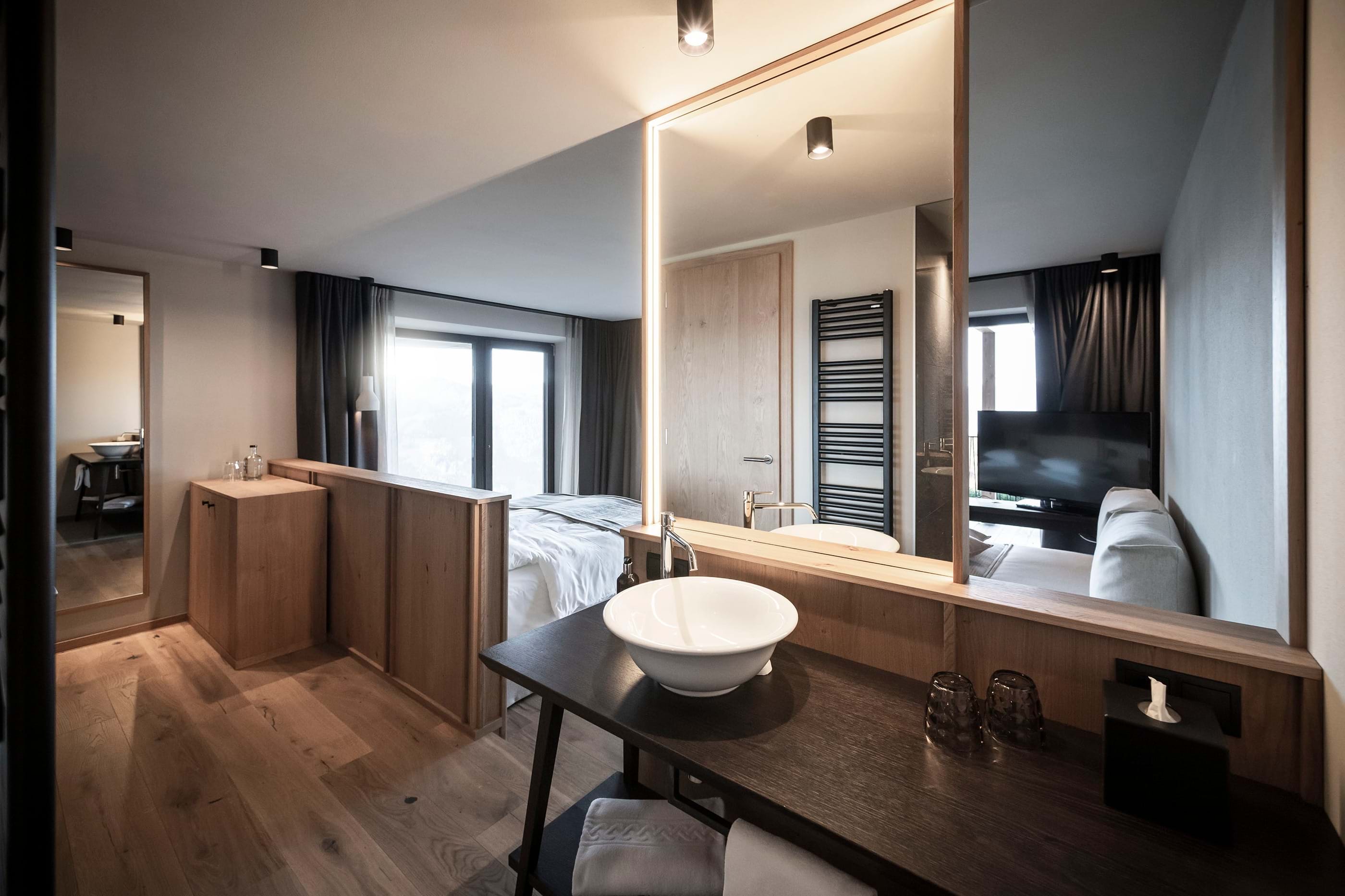 Hôtel Gfell, qui est doucement niché dans le paysage montagneux de l'alpage le plus étendu d'Europe, l'Alpe di Siusi, ravira sans aucun doute tous ceux qui aiment la douceur de la nature. Vous y accéderez par celui existant écurie, qui a été restauré avec soin et transformé en un espace de réception avec un hall d'accueil et une salle de petit-déjeuner. L'hôtel se vante 16 chambres et un appartement, et tous avec une vue panoramique et une atmosphère carrément agréable. Des tons chauds et un mobilier élégant dégagent l'harmonie de la tradition et de la modernité et vous connectent avec la nature. De grandes fenêtres et des matériaux naturels tels que le bois, le verre, la pierre et le loden rendent le logement authentique et confortable.