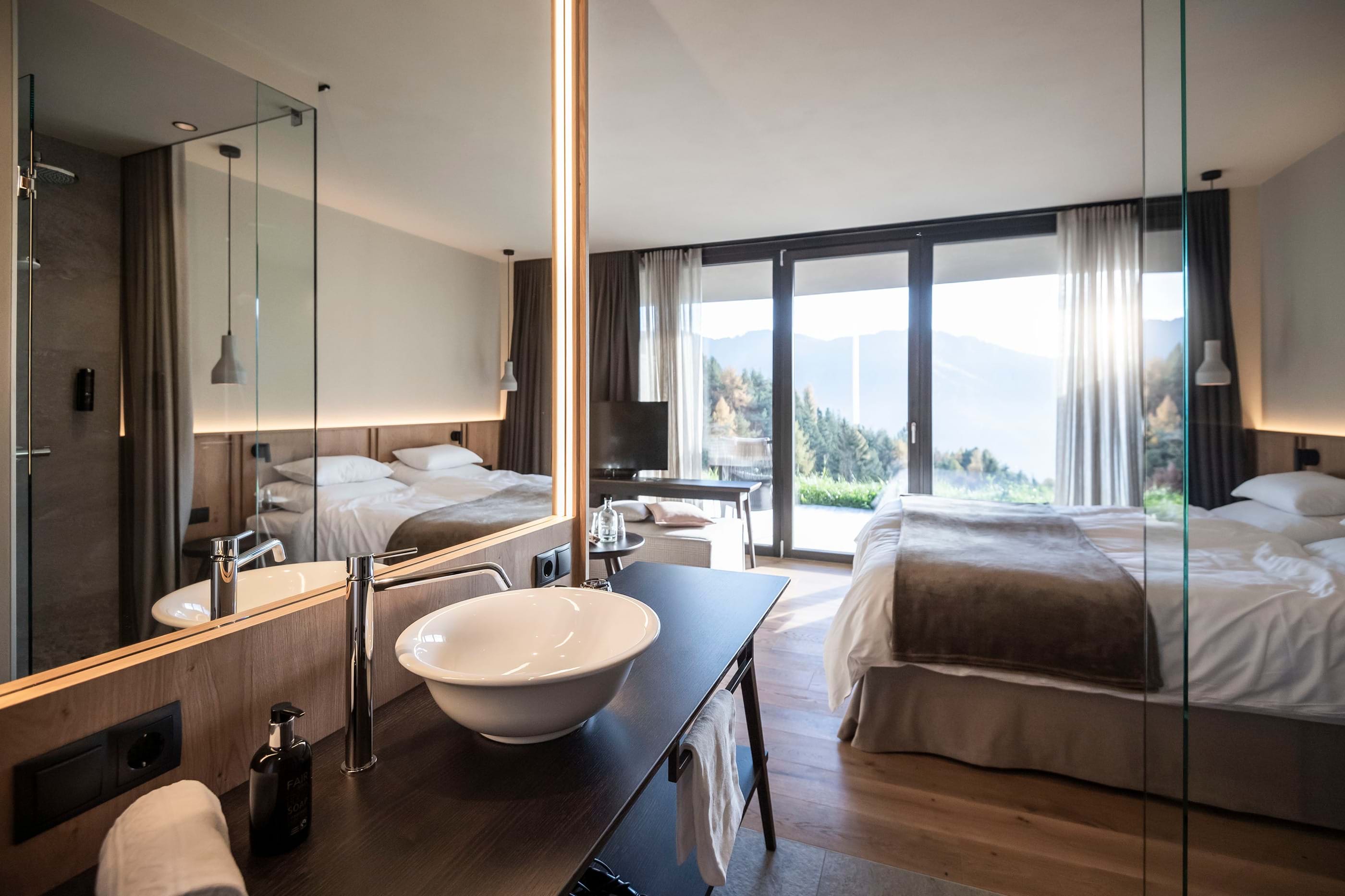 Comme point intéressant, il faut ajouter que les designers et architectes sont du studio NOÉ une approche moins invasive a été utilisée lors de la construction de l'hôtel, car l'hôtel a été construit vers la vallée et non l'inverse. Cela signifie qu'ils mettent les chambres d'hôtes et le SPA à flanc de coteau, ce qu'ils sont réduire l'impact sur l'environnement.