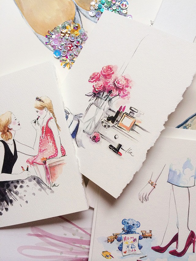 Ses illustrations sont douces, féminines et romantiques. Elle crée principalement avec une technique mixte de crayon et d'aquarelle, et elle ajoute une touche spéciale à ses illustrations en utilisant des paillettes, des cristaux Swarovski et du tulle. Elle a été remarquée par des géants de la mode tels que Missoni, Cartier, Rayban, et elle a également collaboré à de nombreuses publications. En plus de travailler pour les clients, il crée également des illustrations plus petites qui peuvent être commandées directement chez nous. la toile et apportez ainsi un peu de romantisme à la mode dans votre maison.