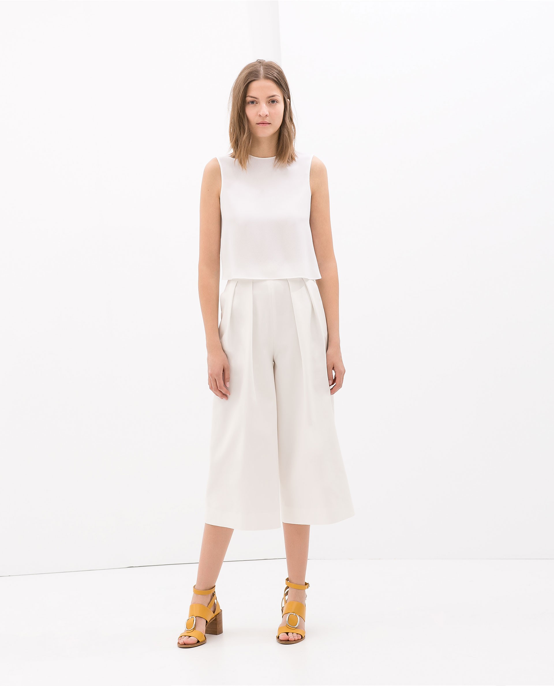Les créateurs mondiaux des dernières fashion week ont encore une fois joué avec pantalon large, qui frisent souvent l'apparence des ailes. V longueurs courtes ou moyennes, noir classique ou jean et motifs vivants ce sera cet été jupes-culottes sont devenus un article de mode incontournable. Pour les déambulations urbaines, ils peuvent être combinés avec un haut décontracté et des sandales basses, tandis que pour un look plus sophistiqué, ils seront parfaits en combinaison avec un blazer moulant et des talons hauts.