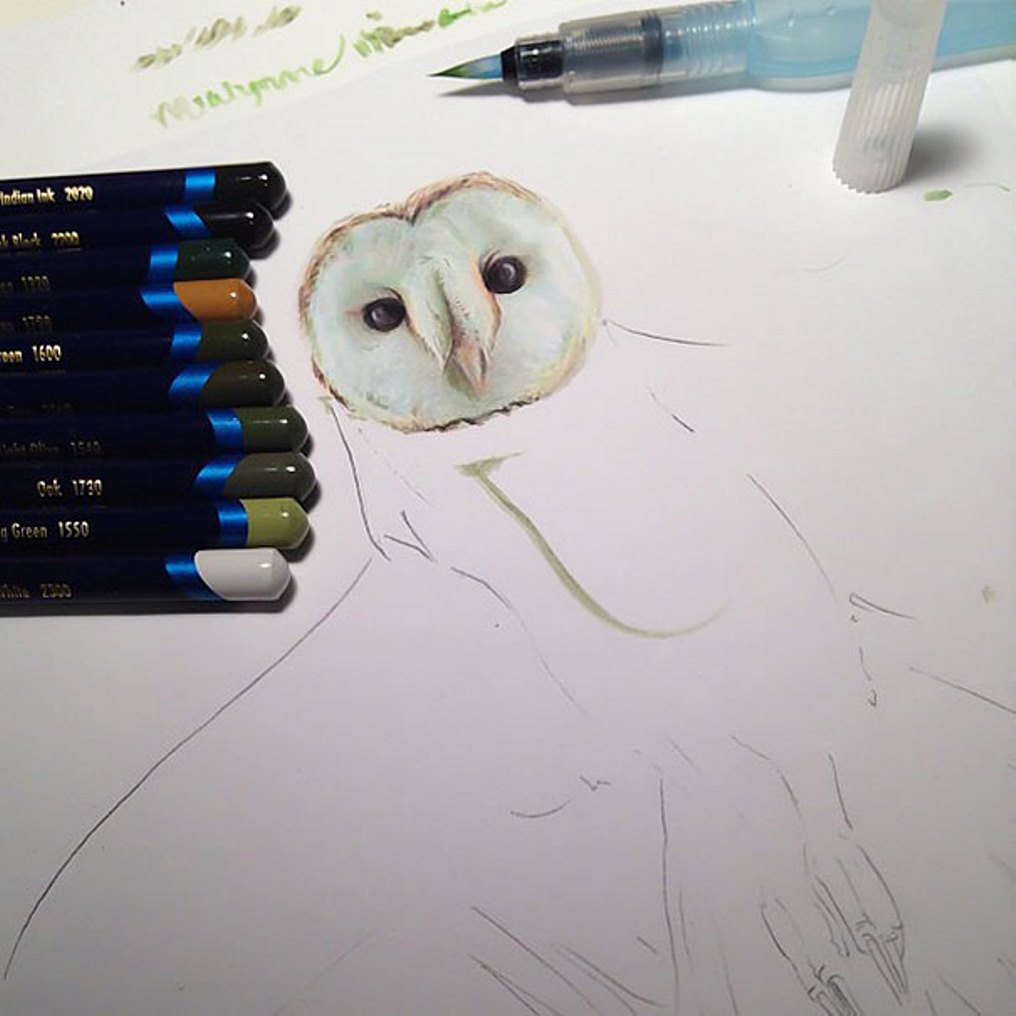 Nekatere risbe ji vzamejo več ur dela, druge celo plusieurs jours, saj je nadarjena mladenka pazljiva pri vsakem barvnem tonu in pri vsaki drobni senci, da na koncu izdelek izgleda kot vrhunska fotografija. Ko pa končani izdelek objavi na svojem Instagramu, se je odločila zraven fotografirati tudi svoje barvice in Pantone flomastre, saj ljudje še vedno kar ne morejo verjeti, da gre namreč za zelo realistične risbe in ne za fotografije živali. Vsako risbo najprej s svinčnikom skicira in potem presodi katere pripomočke uporabiti za želeni efekt. Uporablja barvice, Pantone markerje in akrilne barve, da doseže tako izjemen rezultat in čudovito bogate barve.