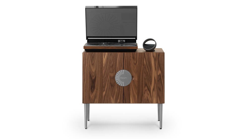 Conçu par Torsten Valeur, qui travaille avec Bang & Olufsen depuis 1995, le Beosystem 72-22 est logé dans une armoire en noyer massif qui se double astucieusement d'un support de platine, d'une armoire de rangement et d'une station de charge Halo à distance tout en un. La dénomination du système 72-22 fait référence à 1972, la date de sortie originale de la platine, et à 2022, l'année de sa recréation dans la même usine - à Struer, au Danemark - où la platine originale a été fabriquée. Valuer a utilisé du noyer naturel et de l'aluminium anodisé, que l'entreprise appelle un ton titane nacré, pour le plateau tournant et l'armoire; mises à jour subtiles du chêne et de la finition argent-aluminium brossé utilisés sur les originaux Jensen.
