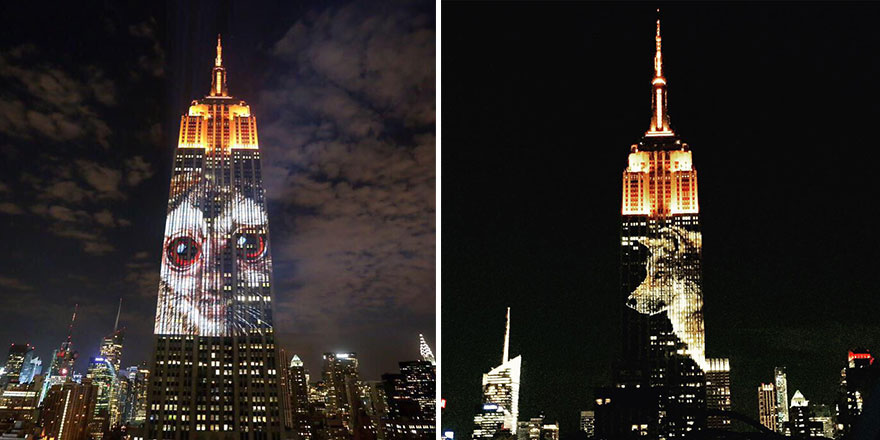 La campagne « Projecting Change » a illuminé la ville grâce à 40 projecteurs. 40 étages du gratte-ciel Empire State Building, haut de 102 mètres. à New York, où, outre Cecil, devenu un symbole de la lutte contre la chasse aux espèces menacées, un autre 159 autres espèces menacées.
