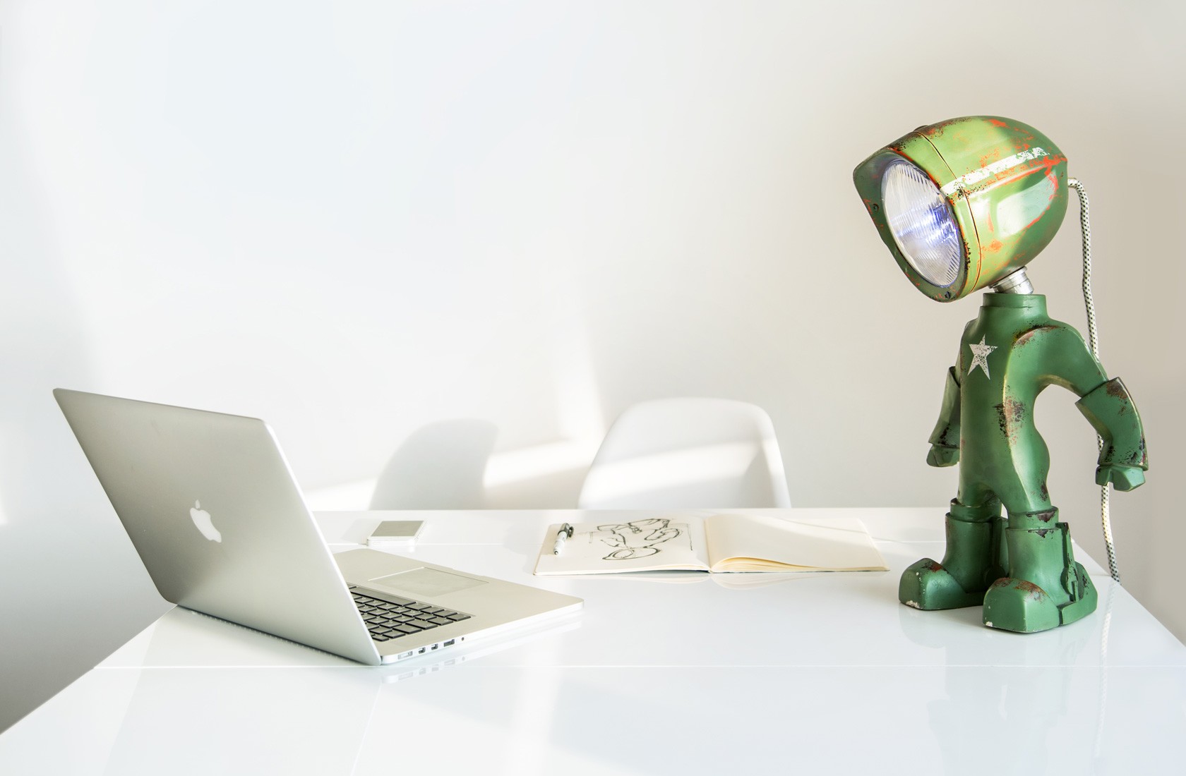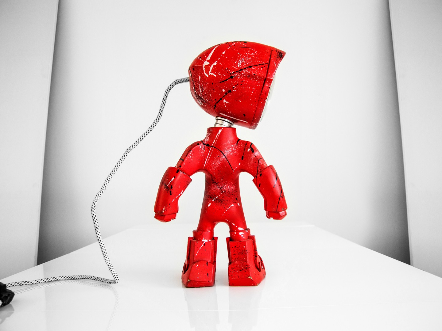 Vsaka namizna svetilka Lampster je unikatna in ukrojena po meri, da se kar najbolj poda k slogu prostora in vaši osebnosti, glava robota, ki je vir svetlobe, pa je kakopak obračljiva.