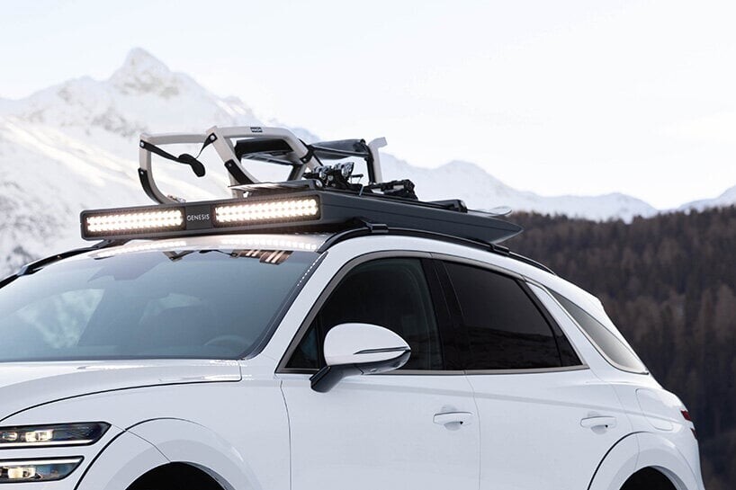 Cette version particulière Genesis GV70 Neige est conçu pour allier luxe et robustesse, ce qui est idéal pour les aventures hivernales. La voiture présente une garde au sol accrue et des passages de roues élargis qui permettent l'utilisation de pneus plus gros. BF Goodrich, également adapté aux conditions hivernales et au terrain. Le GV70 Snow est également équipé de deux Lampes LED Vision X sur une galerie de toit spéciale qui assure une visibilité dans toutes les directions terrains, quelle que soit l'heure de la journée, bien sûr aussi la nuit. Pour compléter l'expérience des sports d'hiver, la galerie de toit transporte également des skis spéciaux sur mesure du fabricant suisse Anavon Skis.