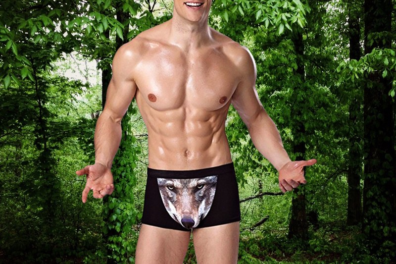 Libérez la bête qui sommeille en vous avec ce slip pour hommes avec un motif de loup dans la zone de l'entrejambe.
