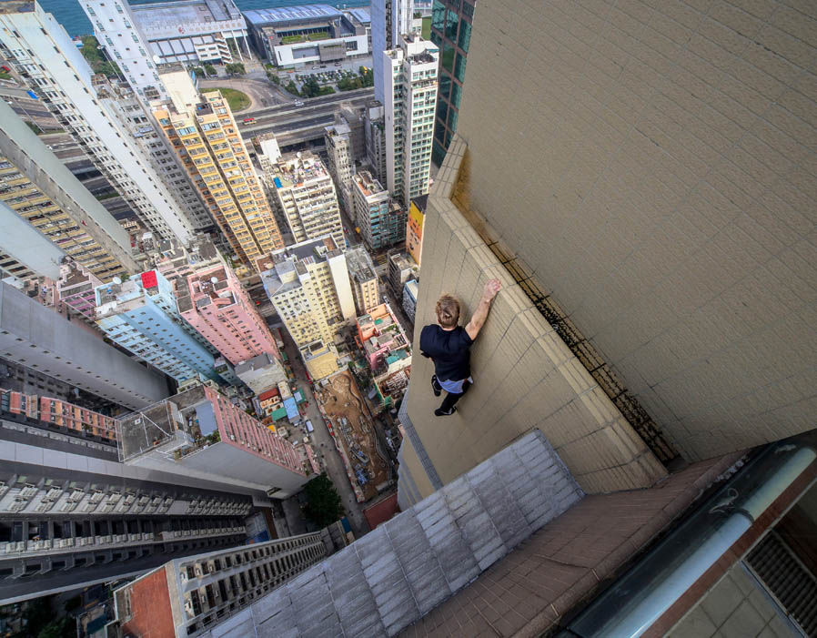 Aventurier urbain Oleg Grillon est un Russe serbe qui escalade régulièrement des gratte-ciel et se produit au sommet flips, saltos, position debout et autres manigances - comme rouler sur un skateboard électrique le long d'un gratte-ciel de Dubaï - qui ne permettent pas la moindre erreur, car chacune peut être fatale.