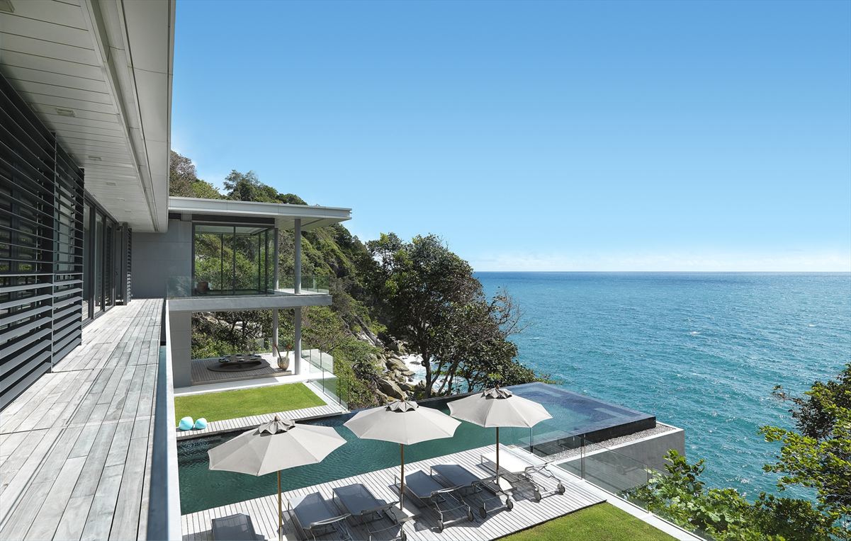 Vila s 740 kvadratnimi metri stoji na pečini nad Andamanskim morjem. Njeno razkošje sestavlja šest spalnic, kuhar, neskončni bazen, ki štrli čez skale, in stopnice do morja. Cena se giblje med 2347 evri na noč in 4694 evri na noč.