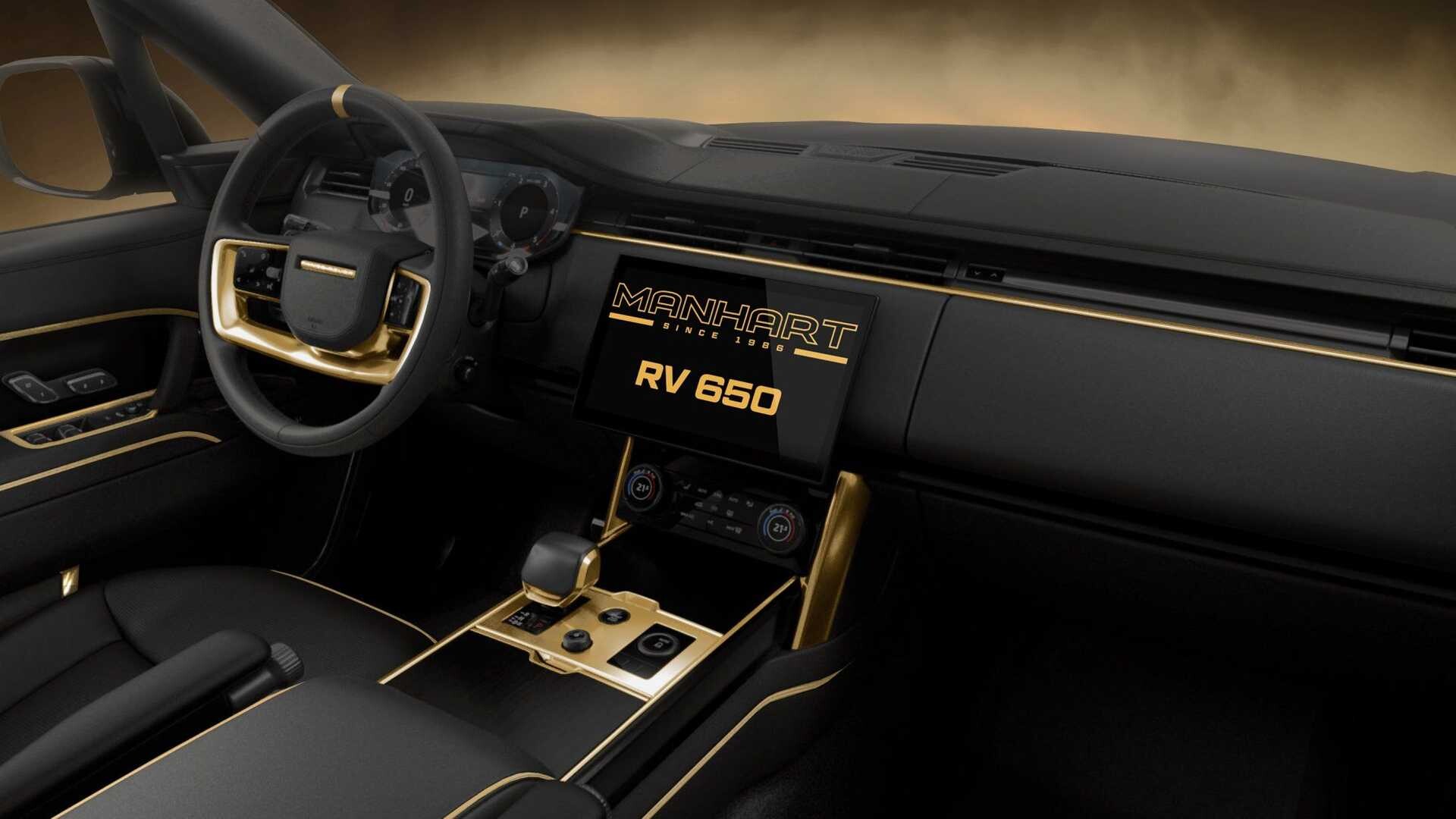 Manhart ne traite qu'exceptionnellement des voitures qui ne portent pas l'emblème BMW, Mercedes-Benz ou Audi. Pour le nouveau Land Rover Range Rover, qui est actuellement l'un des produits les plus en vogue du segment des SUV, ils ont fait une exception et créé un chef-d'œuvre noir et or, le Vogue RV 650.