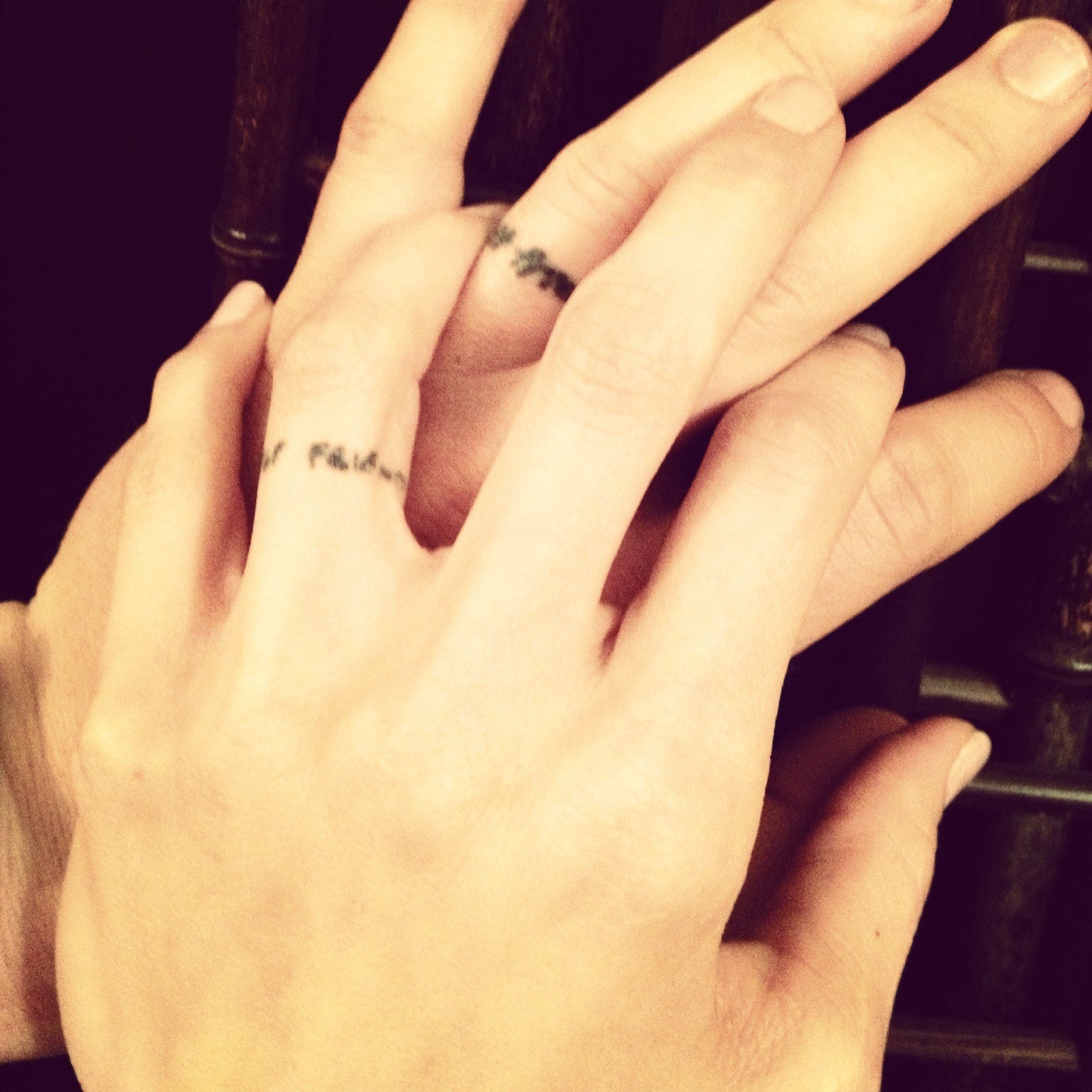 Anneaux de mariage comme les tatouages ? Tatouages avec initiales ils constituent une manière douce de faire savoir secrètement aux autres à qui vous appartenez réellement. Les possibilités sont infinies! Si vous prônez de nouvelles tendances, vous pouvez en opter pour une unique unisexe choisir une alliance sous la forme d’un tatouage géométrique en diamant. Ou pour une bague minimaliste qui représente l'infini de la vie à deux. Vous est-il déjà arrivé de dire que vous vous aimez « jusqu'à la lune et retour » ?