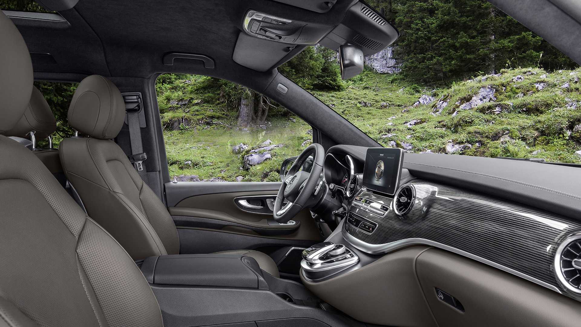 Mercedes-Benz razred V est maintenant luksuznejši, saj si lahko omislite kakovostno usnje Nappa ali Lugano. Le to lahko popestrite z accessoires, narejenimi iz ebenovine, karbonskih vlaken, brušenega aluminija ali plastiko, barvano v piano črnem visokem sijaju.