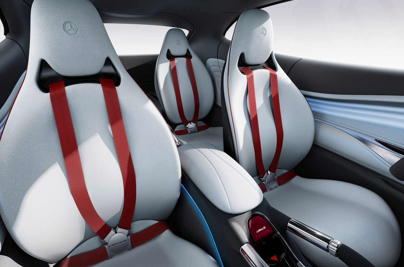 Le caractère distinctif de la conception de la cabine passagers signifie également l'absence de montant B, il est donc beaucoup plus facile d'accéder à l'un des quatre sièges. À première vue, l'intérieur est conçu à la fois très futuriste et minimaliste, et les quatre sièges séparés ont un dossier monobloc et des ceintures de sécurité spéciales à six points..