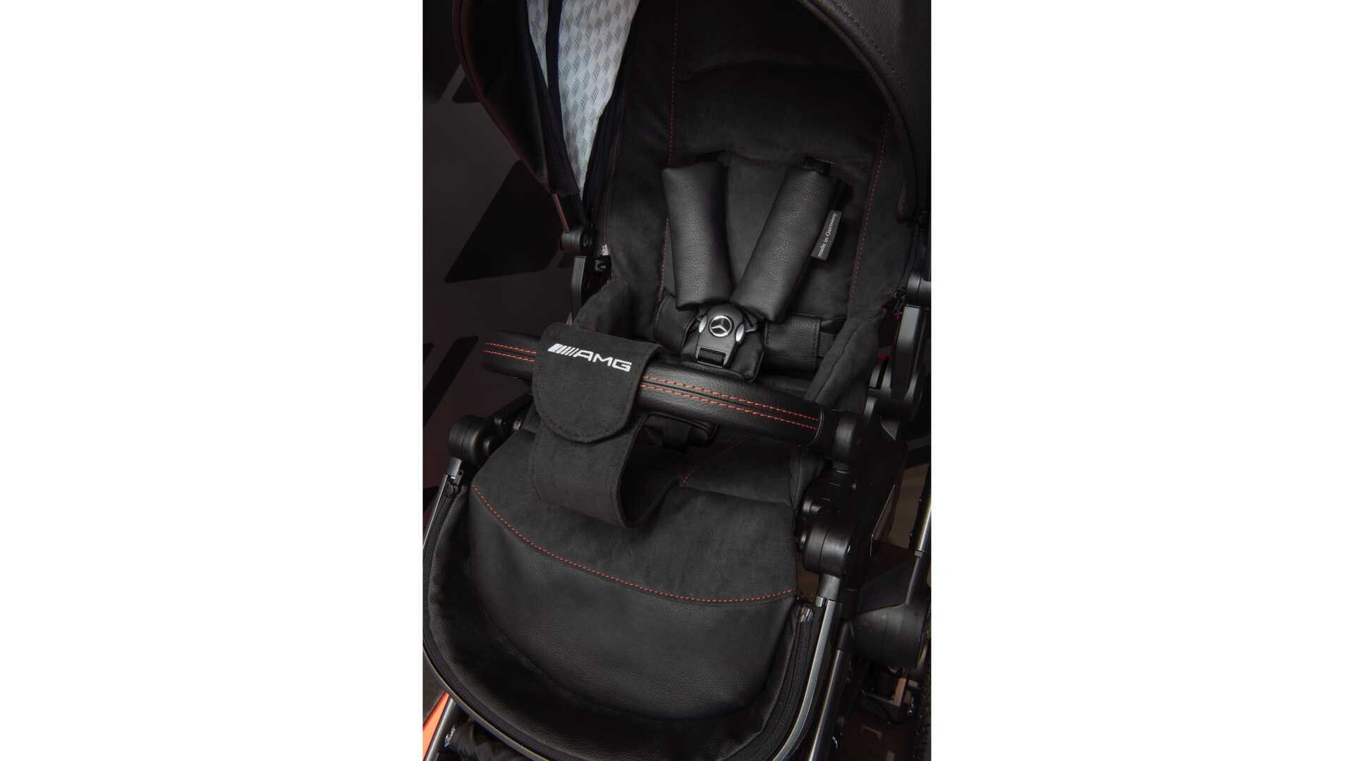 Mercedes-AMG et Hartan ont créé une poussette spéciale en édition limitée qui initiera les tout-petits aux performances, au prestige et à l'élégance offerts par les voitures Mercedes-AMG dès leur plus jeune âge. Il ne sera disponible que 299 exemples du landau, qui dans cette série limitée est coloré v combinaison noir et rouge. La poussette est calquée sur le coupé quatre portes Mercedes-AMG GT. La série spéciale a un ʺdômeʺ noir et rouge, du cuir noir avec des surpiqûres rouges sur le ʺvolantʺ, et l'intérieur est doublé de microfibres Dinamica, que Mercedes utilise par ailleurs pour tapisser l'intérieur de ses voitures.