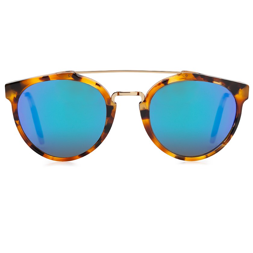 Sončna očala iz Italije z zaobljenimi “D okvirji” so izdelana iz rjave želvovine ter vključujejo modrozelene Zeissove športne leče.