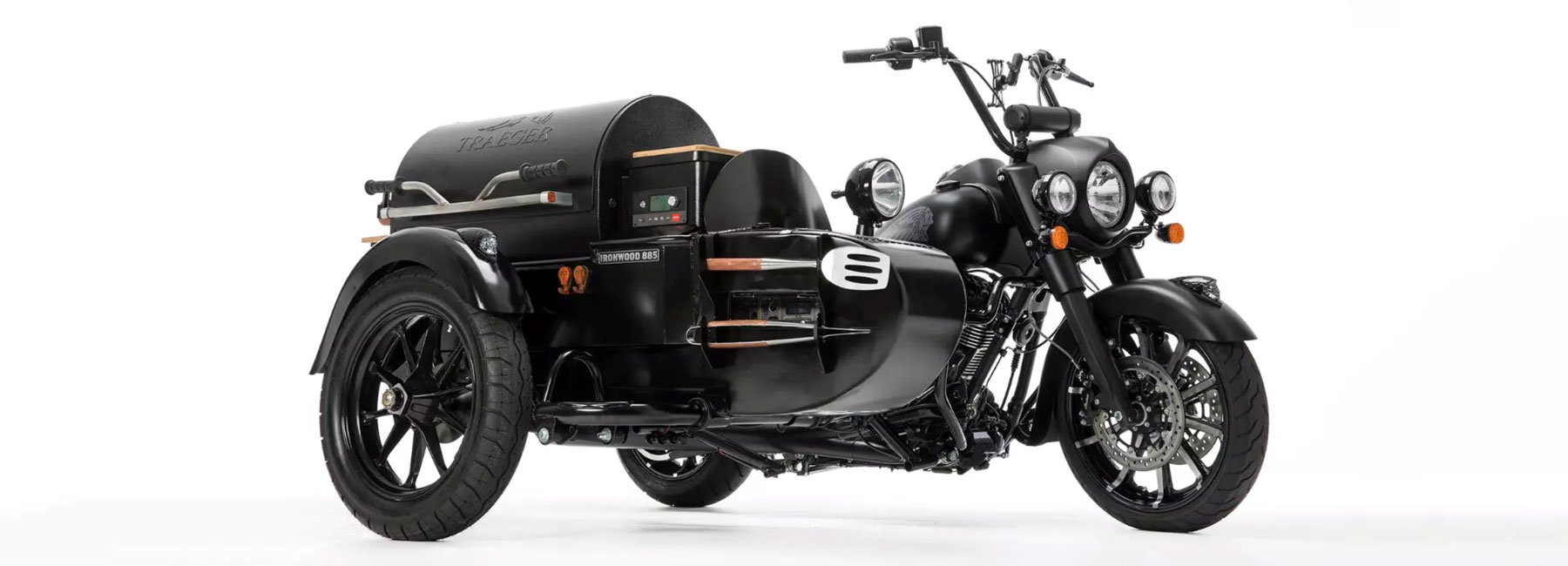 La collaboration entre Indian Motorcycle et Traeger est littéralement brûlante - car la moto Indian est « équipée » du bon mobile gril. La base est une moto Indian Motorcycle Springfield Darkhorse, auquel, sous la forme d'un side-car, ils ont attaché une grille Traeger Bois de fer 885.
