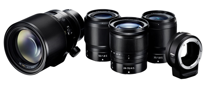 Nikon je hkrati najavil tri nove objektive, ki bodo združljivi z novima fotoaparatoma. Govora je o standardnem zoom objektivu NIKKOR Z 24-70mm f/4 S, širokokotnem objektivu s fiksno goriščno razdaljo NIKKOR Z 35mm f/1.8 S in standardnem objektivu s fiksno goriščno razdaljo NIKKOR Z 50mm f/1.8 S. Na voljo bo tudi novi adapter za bajonet FTZ, ki bo omogočil uporabo približno 360 obstoječih objektivov z bajonetom F.