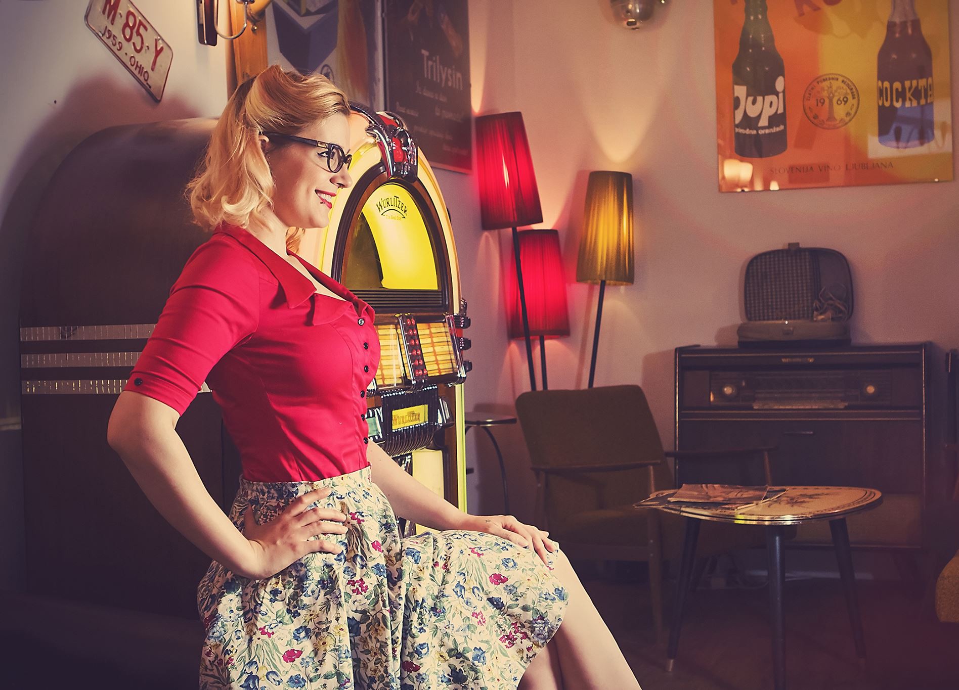 Si vous êtes déjà un célèbre lecteur de musique à pièces Juke Box vu uniquement dans les films et les photographies, vous aurez ici l'occasion de le rencontrer en direct. Aussi caisse enregistreuse ancienne, une vieille glacière Coca-Cola, des emballages métalliques de marques nationales et étrangères, des affiches vintage, des téléviseurs, des radios, gramophone, un canapé converti à partir d'une Ford de 1959 et une table en caoutchouc fabriquée à partir de vieux pneus. La ville a même été trouvée pour station-essence, comme ils accompagnaient autrefois la fameuse route Route 66, et pour vieux jouets, skis, patins, landaus... Cinquante ans et plus en arrière, l'éclairage est également revenu, pour tabourets de bar cependant, ils ont même utilisé des chaises de salons de coiffure. Ils "se sont précipités" là-bas aussi avoir, qui ont été traités à la lumière.