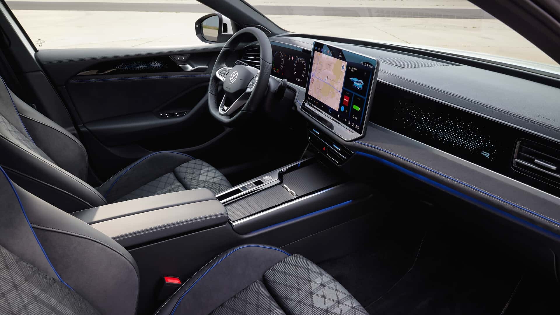 A l'intérieur, Volkswagen a fait un grand pas en avant avec le modèle Volkswagen Passat 2024. La plupart des interrupteurs ont disparu, puisque vous contrôlerez presque toutes les fonctions via l'écran tactile, qui mesure jusqu'à 12,9 pouces dans le modèle de base. Moyennant un supplément, le système d'infodivertissement peut être augmenté jusqu'à 15 pouces. Les instruments numériques dotés d’un écran de 10,25 pouces sont de série, ce qui signifie que Volkswagen dit adieu aux jauges analogiques.