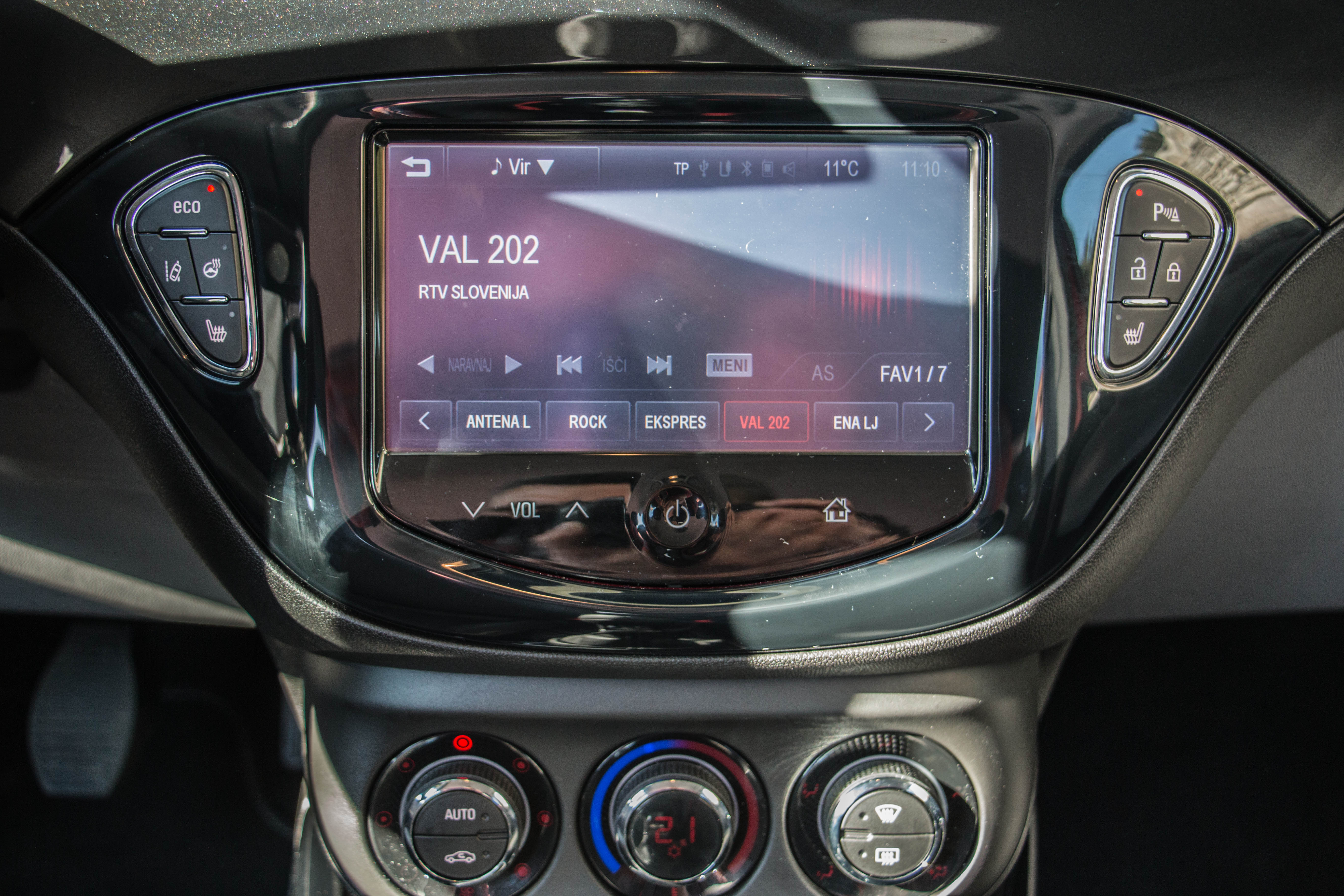 V potniški kabini navduši kakovost izdelave in izbira dosti boljših materialov kot v predhodnici. Seveda je svežina opazna tudi pri oblikovanju, kjer je Corsa podedovala veliko oblikovnih detajlov armaturne plošče iz manjšega Opla Adama. Le ta je očiščena množice gumbov, ki jih deloma nadomešča ekran na dotik – središče sistema IntelliLink. Ta omogoča sodobno in odlično povezljivost s pametnemi telefoni ter povezljivostjo z internetom, kjer je na voljo kar nekaj aplikacij. Sistem je simpatičen in nezapleten, zato ga lahko le pohvalimo.
