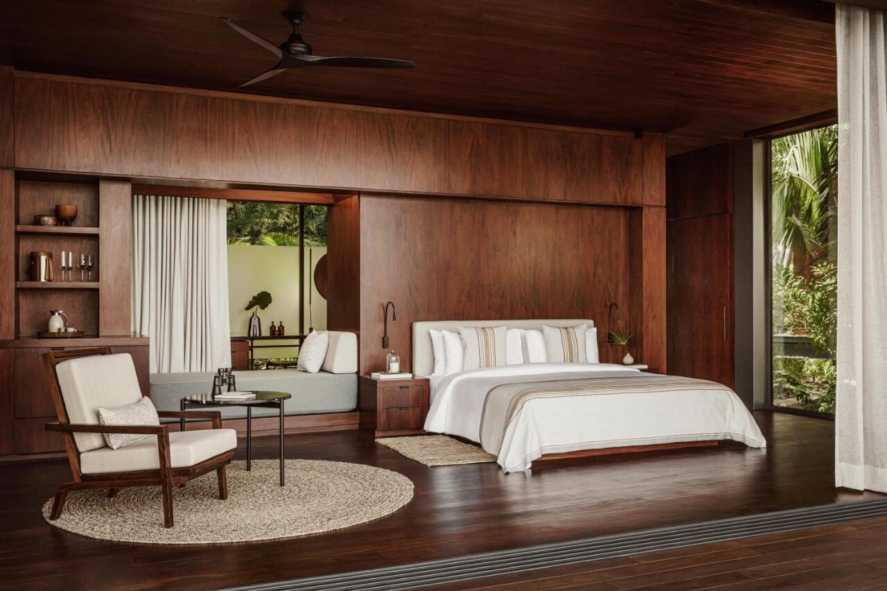 One&Only Mandarine car il se marie à merveille avec la forêt tropicale et deux des piscines à débordement s'étendent vers l'océan. Il y a 105 villas dans le complexe, dont certaines se trouvent au sommet d'une falaise, d'autres sur un arbre. Les villas sont élégantes, minimalistes et au design durable en harmonie avec la jungle. Dramatiquement pris en sandwich entre les vagues de l'océan Pacifique et la chaîne de montagnes de la Sierra del Vallejo.