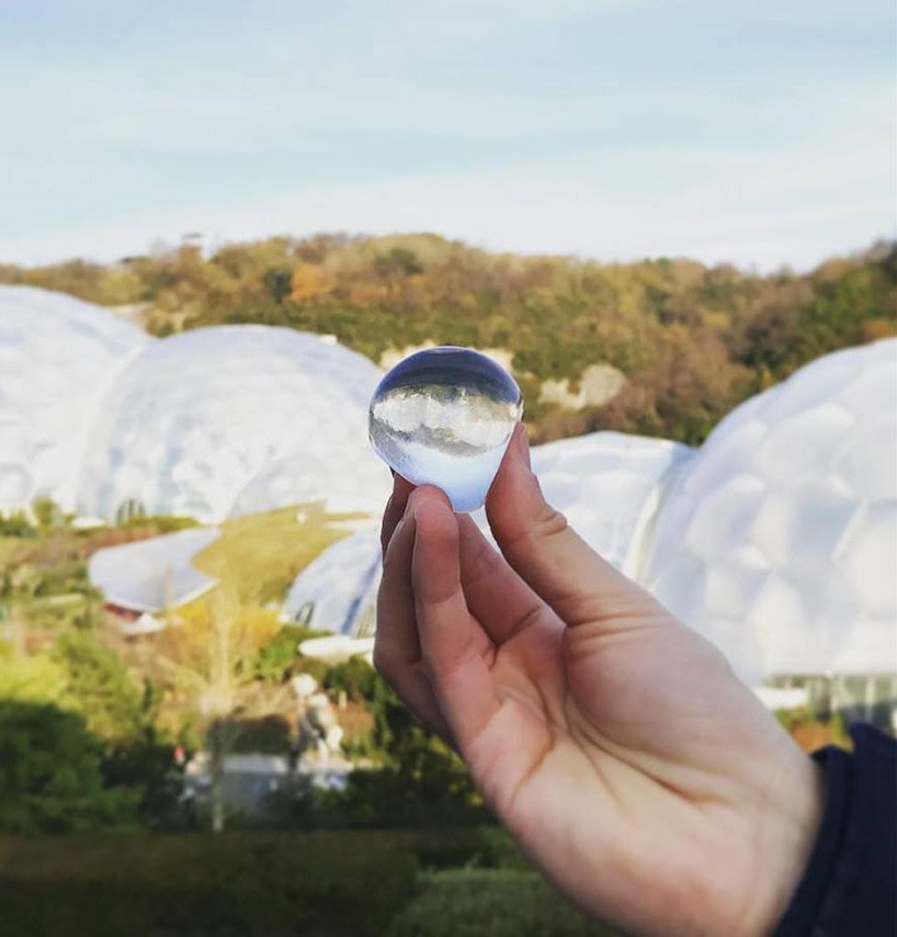 La plupart des emballages représentent beaucoup fardeau sur l'environnement. Mais pas l'emballage de l'entreprise londonienne Laboratoire de saut de roches. Ça l'a fait matériau biodégradable (en panne au bout de quelques semaines) qui peut retient l'eau, sous forme de boule.