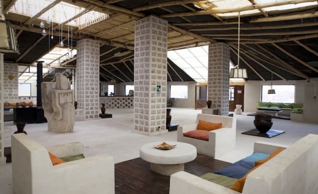 Hôtel de sel Palais de Sal ce n'est pas un mirage comme le paysage d'un autre monde semble autrement Salar de Uyun (Bolivie), où il se trouve. C'est un vrai et le plus grand hôtel de sel du monde faite de briques faites de sel, une denrée qui ne manque pas dans ces régions car elle repose littéralement sur le sol, il est donc logique qu'elle ait été utilisée comme matériau de construction. Ils sont également faits de cristaux blancs murs, plafonds, sculptures, tables, chaises, lits et autres meubles. L'hôtel a avec 30 chambres, qui ressemblent à des igloos, sauf qu'au lieu de glaçons ou de cubes de neige fait de cubes de sel.