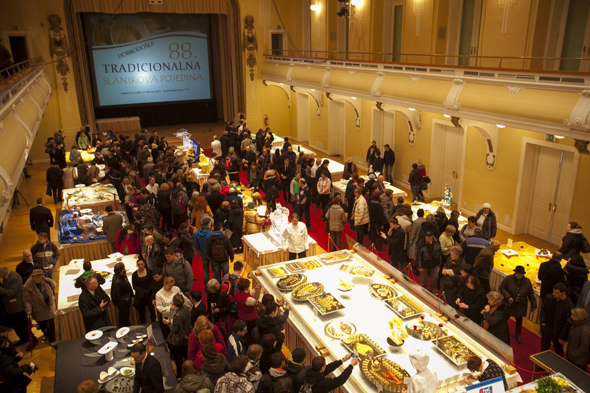 Cette année 89. Fête de Slaniko il propose une exposition culinaire pour les yeux et des délices salés pour les papilles. Cependant, ils ont apporté de la fraîcheur à l'événement il y a sept ans, c'est-à-dire concours culinaire dans la préparation de poissons froids, crabes, moules, mollusques, desserts, art culinaire sur le thème de la fête de Slaniko (à partir de glace, sel, pâte, fruits, légumes, sucre, pâte d'amande) et la préparation de risotto et brodet de fruits de mer devant des invités.