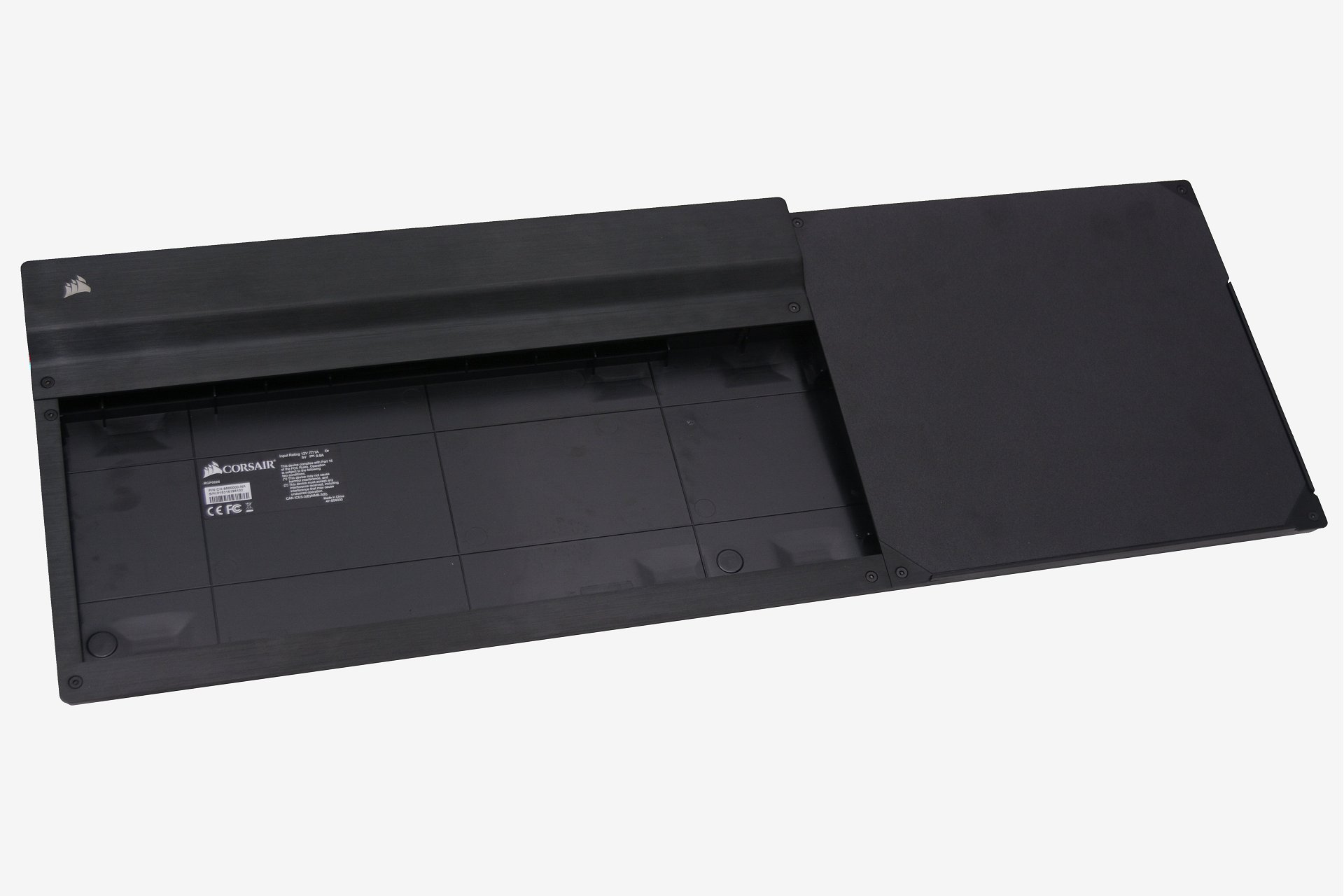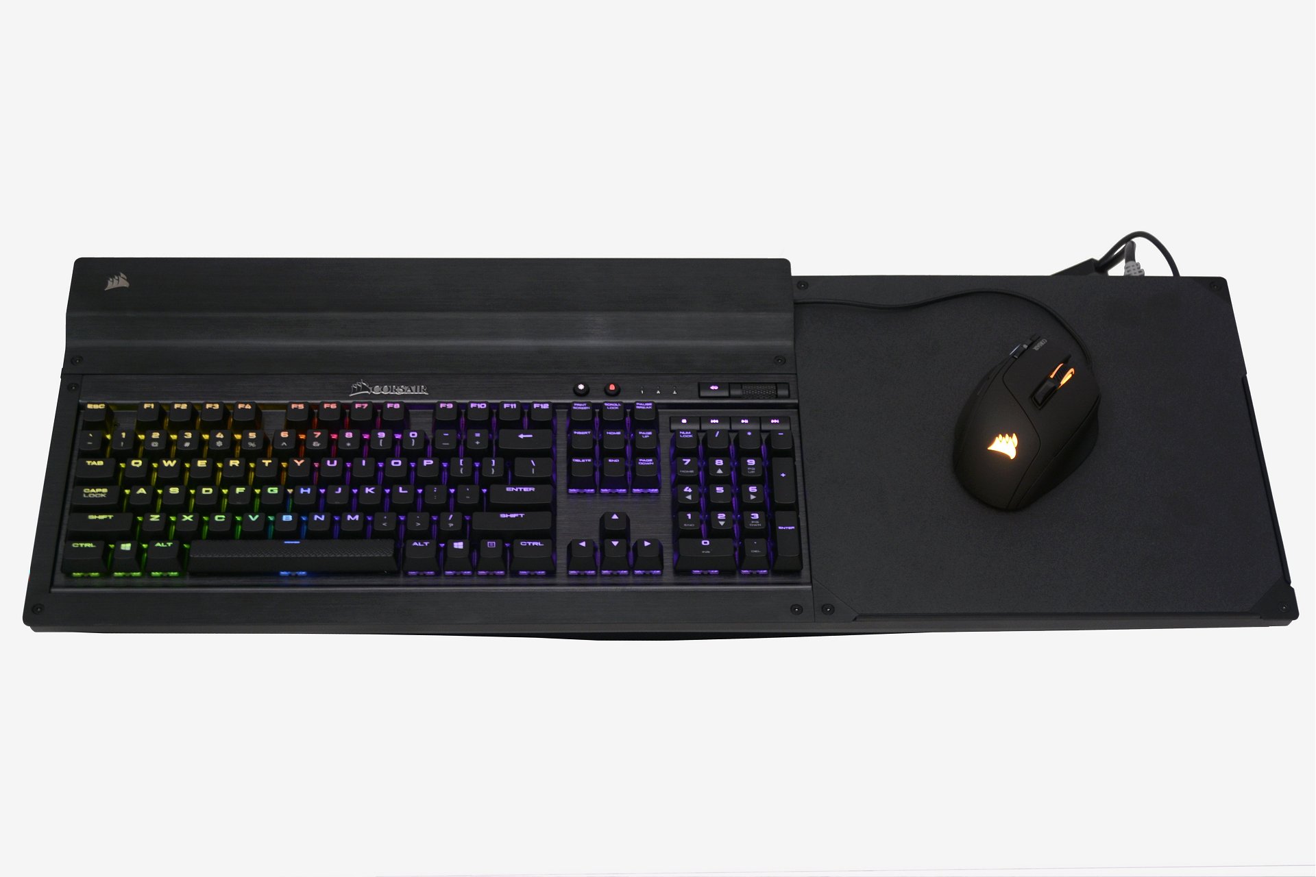 Base Corsair Lapdog ima prostor za (polnokrvno) tipkovnico in površino za miško v velikosti nogometnega igrišča (28 x 28 centimetrov). V nasprotju s podobno ponudbo, kot je Razer Turret, vam pri Corsair Lapdogu ni treba kupovati nove periferne opreme in se zadovoljiti z izbiro proizvajalca, ampak izberete enoto po svoji želji.