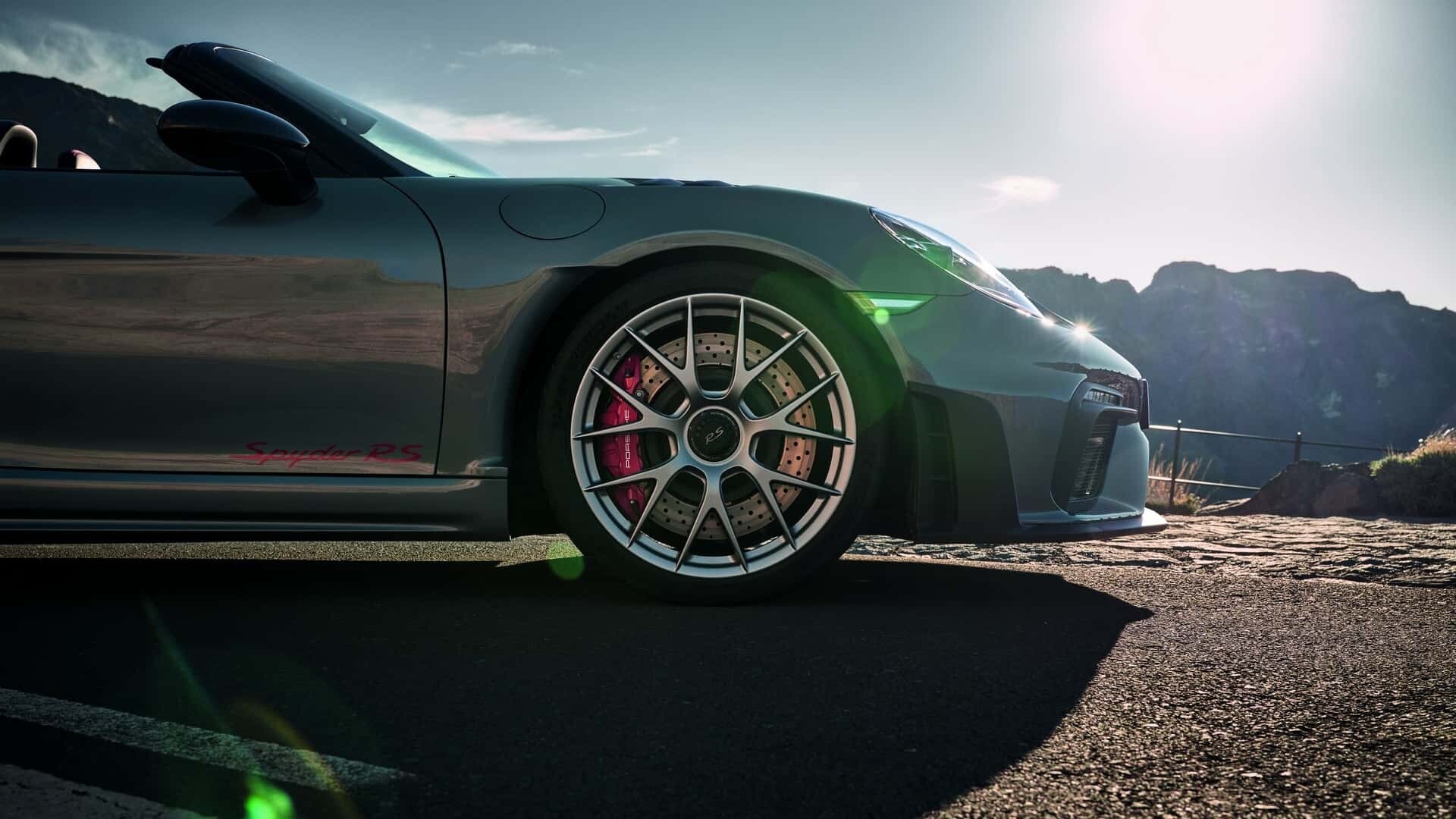 718 Spyder RS a des roues forgées de 20 pouces, et pour ceux qui recherchent encore plus de performances, Porsche offre des roues en magnésium en option. La position du véhicule est plus basse pour 30 millimètres (1,18 pouces), ce qui contribue à son aspect agressif et sportif.